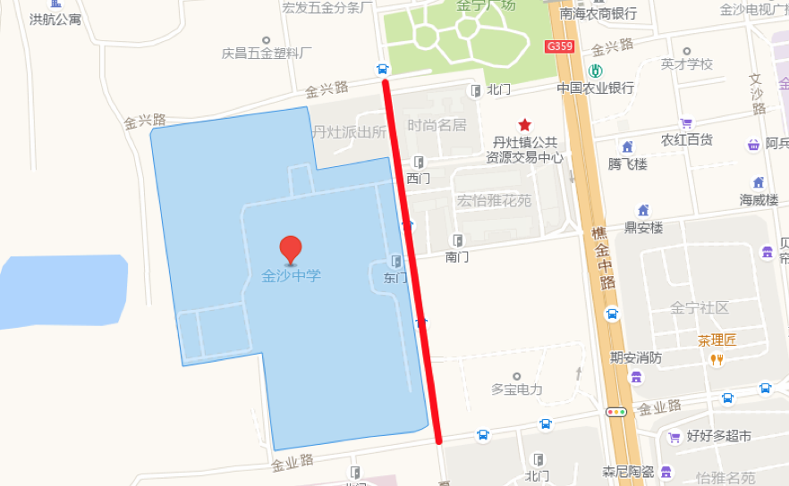 丹灶派出所金兴路口、金业路与夏沙路的交汇路口实施封闭,丹灶交警中队金沙片区对出路口,禁止一切车辆驶入金沙中学方向,途经金沙中学路段的车辆及公交车绕道行驶。