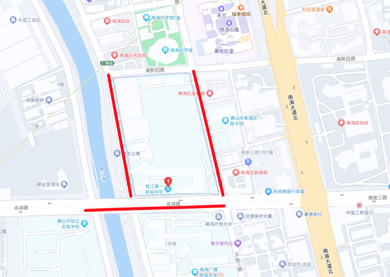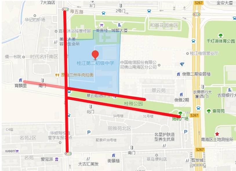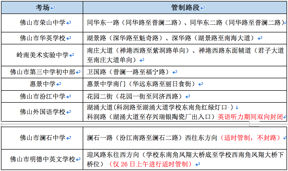 学校对开的佛清从高速辅道(狮山往罗村方向)最右侧车道实行临时交通管制,供参加考试的车辆临时上下客用。(只封闭6月26日上午)