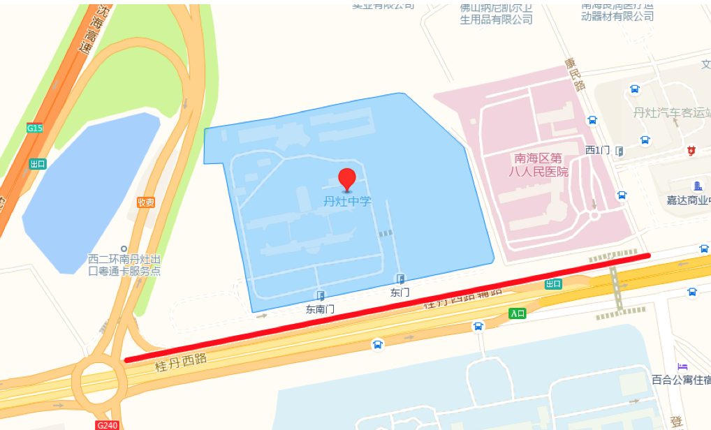 丹灶中学正门路口实施交通管制,禁止一切社会车辆驶入学校,学校门前及周边路段,考试期间丹灶中学门前辅路封路,途经丹灶中学路段的车辆及公交车绕道行驶。