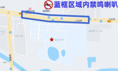 合瑶路(学校前路段)机动车禁鸣喇叭。