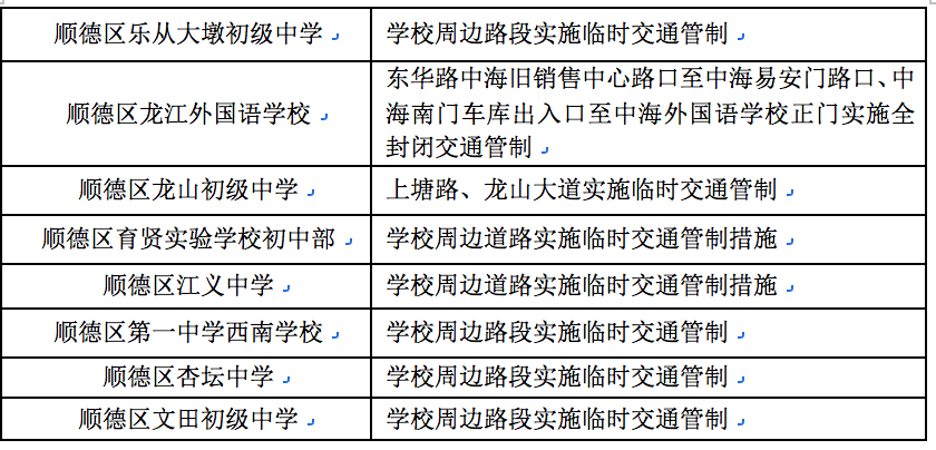 三、顺德区交通管制信息: