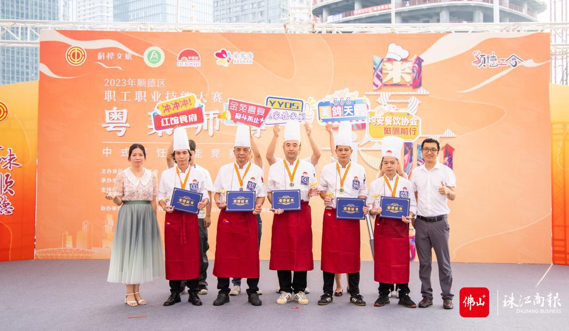 经过自选菜式和指定菜式两轮精彩角逐,最终,来自乐从镇御品和园餐饮店的陈伟锐脱颖而出夺得金钻奖,并获顺德区总工会颁发“顺德区职工岗位技术状元”荣誉证书;顺德区均安餐饮协会廖用兵、佛山市美鸽天下饮食管理有限公司江汝芬、顺德区红红馆餐饮有限公司王永祺、佛山市福中福餐饮有限公司(金苑喜宴)严程建、均安这家掂餐饮店黄家宏斩获大赛银钻奖,获颁“顺德区职工岗位技术能手”荣誉证书。