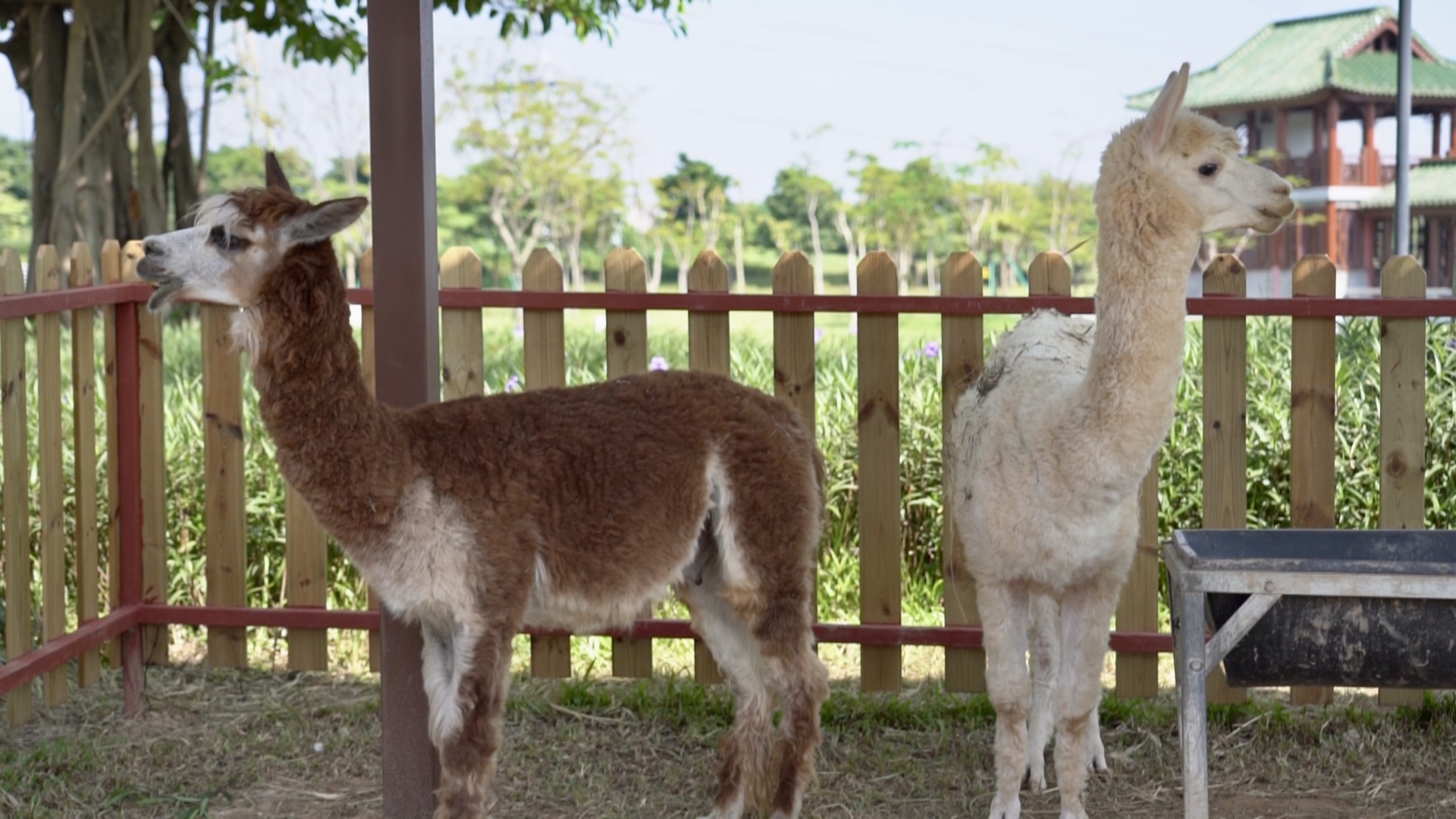 从大门口进园步行5分钟左右,就能到达占地面积超过1万平方米的萌宠童乐园。这个新区域从今年国庆假期开始对市民免费开放,目前已有小矮马、盘羊、羊驼、驼羊、梅花鹿等可爱动物进驻。