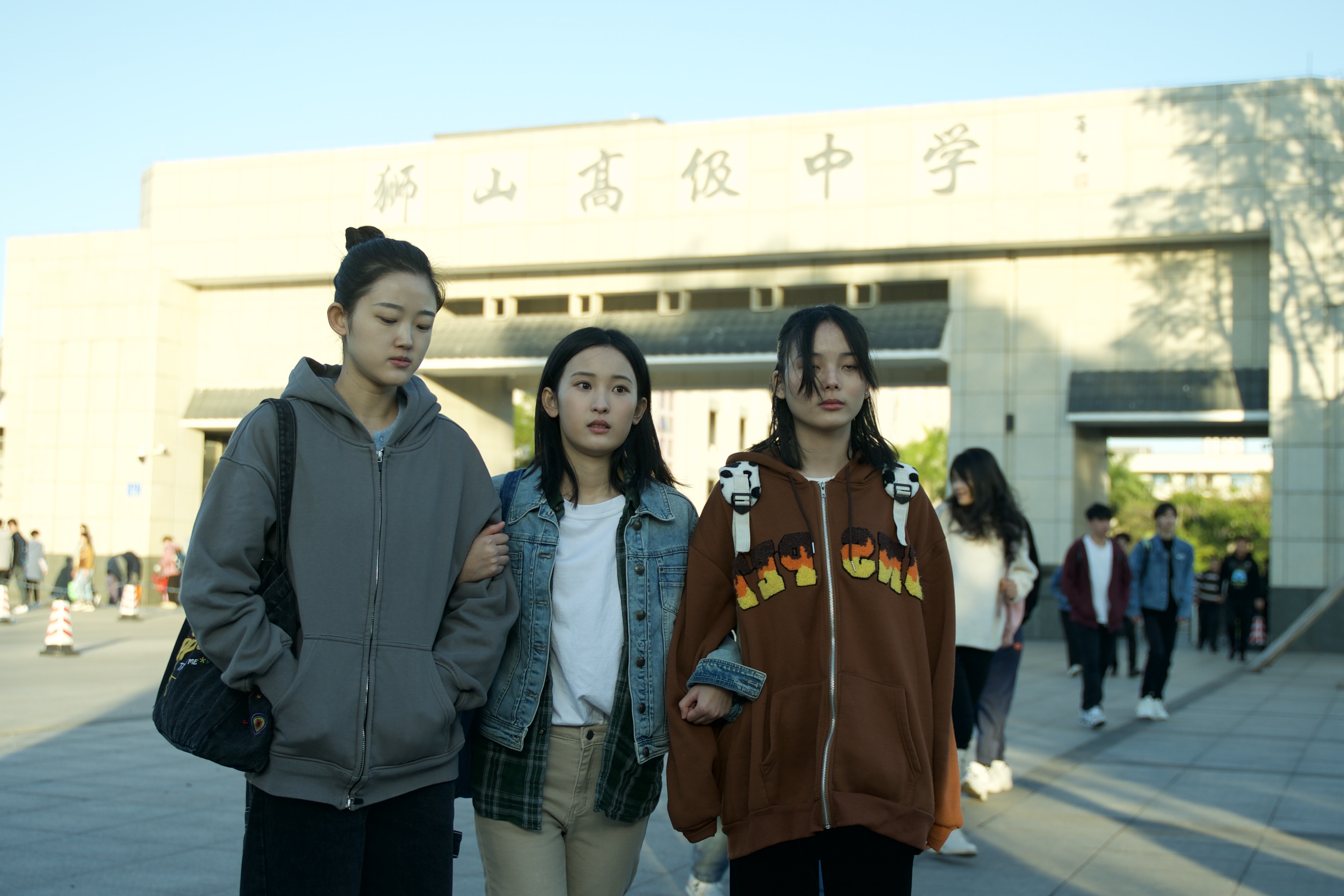 剧照拍摄地:位于佛山市南海区的狮山高级中学。这场戏的主角是“程兵”的女儿慧慧(中),但因为剧情有所删减,观众在正片中难觅此景。