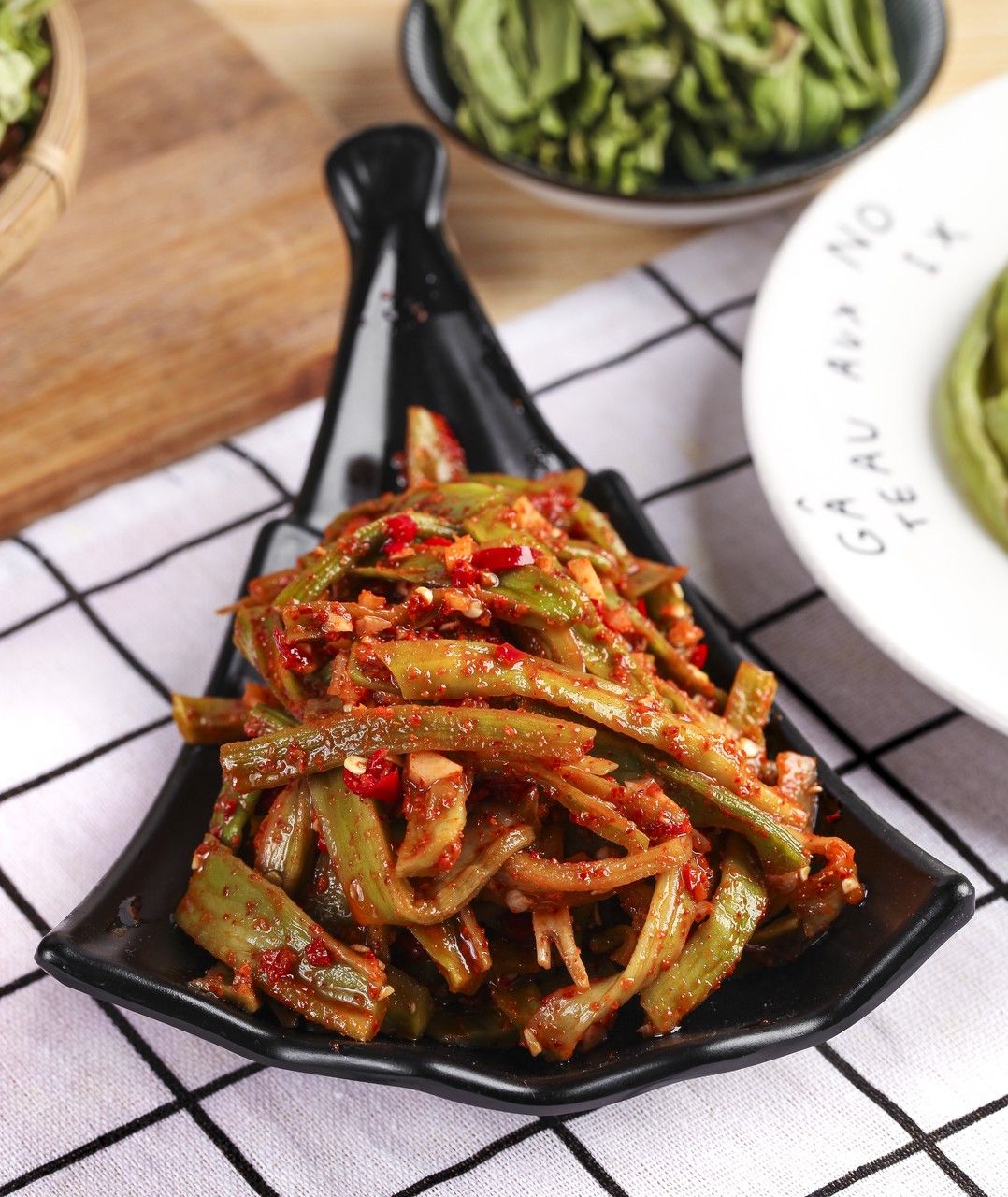 市售的那种真空包装的是晒干后再经过盐水浸制的,这种脱水再吸水的加工过程带给了贡菜脆韧的口感。