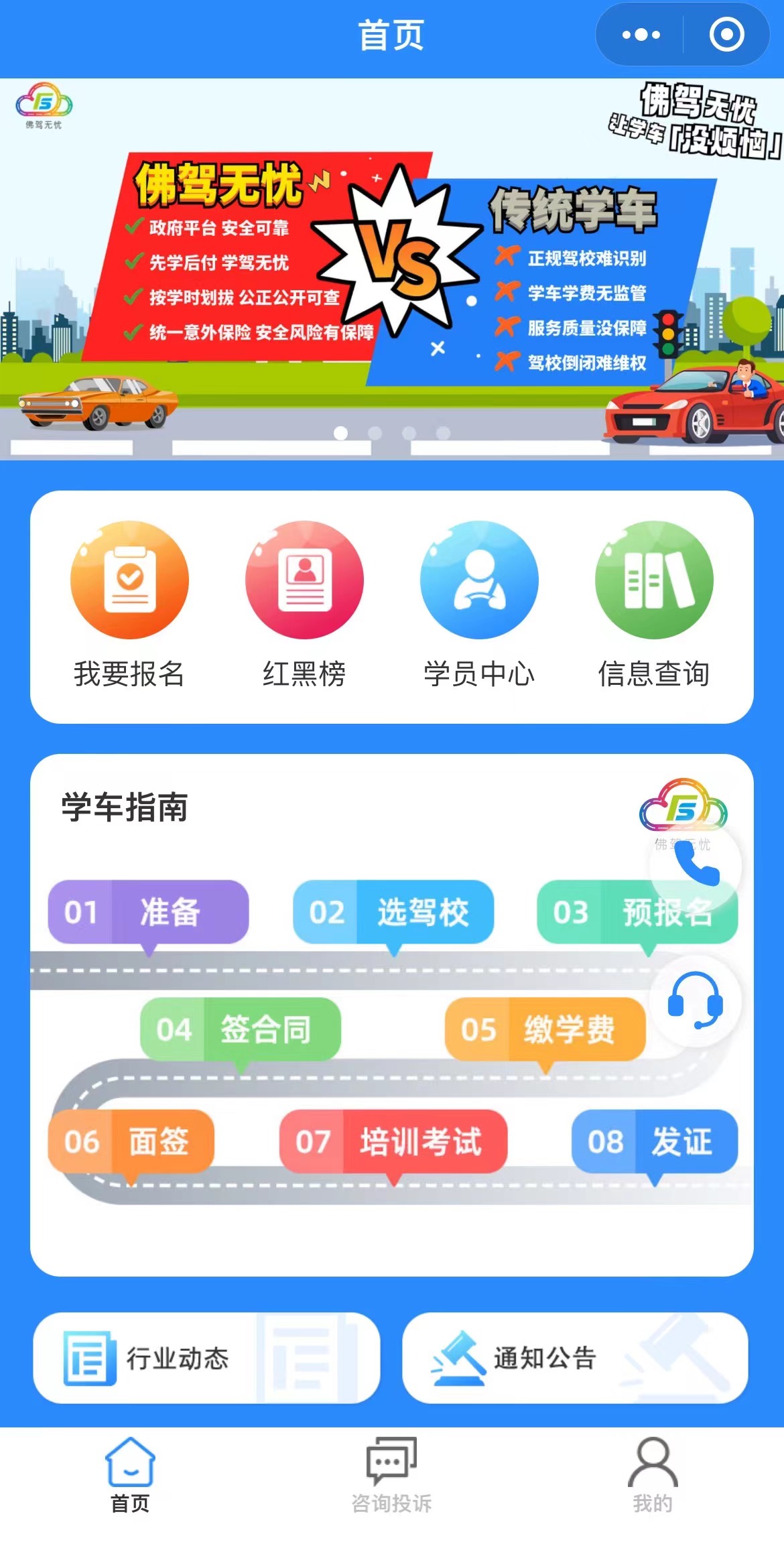 2024年1月1日,佛山学车公共服务平台正式上线,依托微信小程序“佛驾无忧”,开启驾培行业发展新模式。打开“佛驾无忧”,报名通道、驾校红黑榜、学员中心、学车指南等信息一目了然,平台为学员从选驾校到领证的每个步骤,都清晰列明了指引。