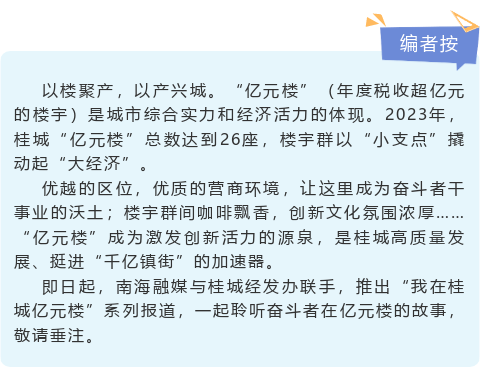 陈新所说的“荣耀国际金融中心”位于桂城千灯湖中央活力区、国家级夜间文化和旅游消费集聚区,自2016年招商运营以来,已进驻多家大型国内外知名企业,超80家企业在此办公,产业集聚效果显著,成为桂城年纳税达亿元的“亿元楼”新晋成员。