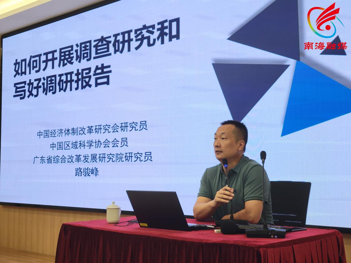 培训会上,路骏峰以南海区情实际出发,用大量的调研事例,为大学生们上了一堂干货满满的区情调研培训课。