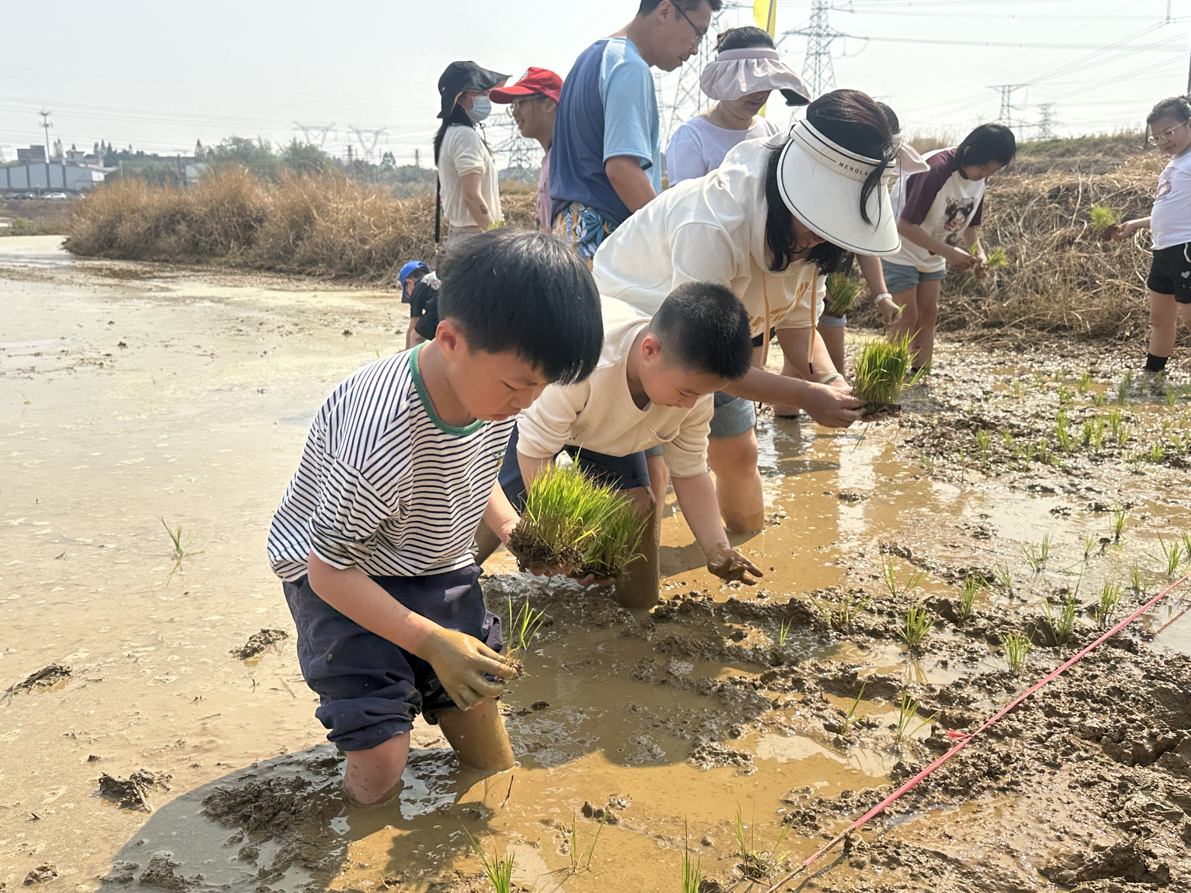 亲子一起插秧。