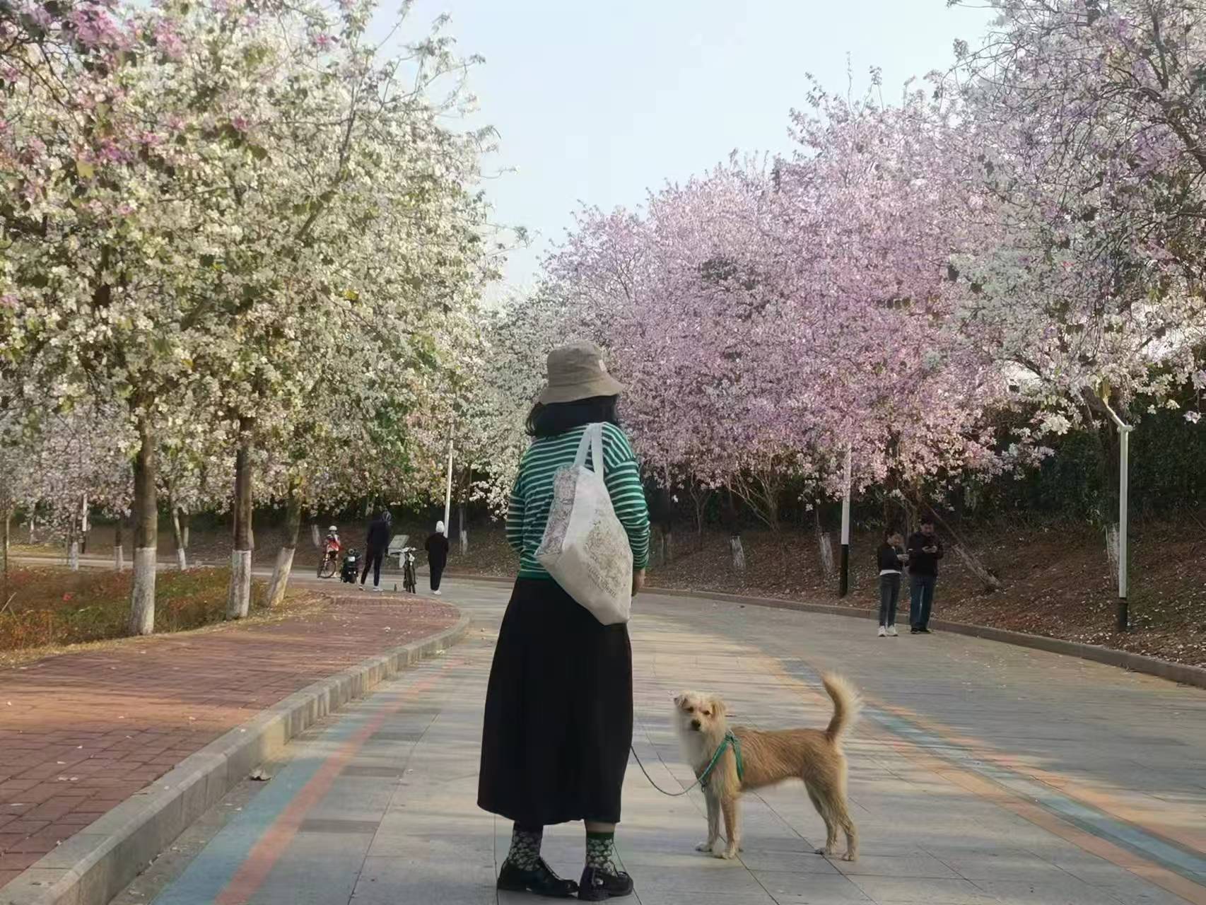 和只开花不结果且花朵繁密的红花羊蹄甲相比,宫粉紫荆的花期短暂,又因为花色浅淡不是很抢眼,常常不被看见。往年看宫粉紫荆,要特意到水濂湖公园,那里的绿道拐弯处宫粉紫荆种植比较密集,很出片。