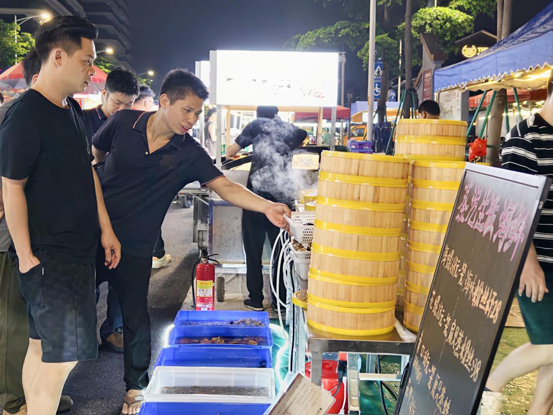 夜市上的蒸汽海鲜摊位吸引不少市民前往。南海融媒记者何燕慧摄