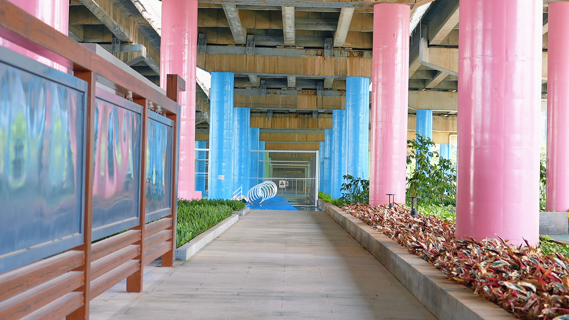 “改造前涉及管理部门多,衔接不到位,导致环境脏乱、景观杂乱。”禅城区张槎街道办事处副主任黄志锋坦言,该区域长期存在多头管理难题。2024年,街道投入2000万元启动改造工程,通过政府主导、社会参与、市场化运营模式,将桥下空间划分为文化展示、运动健身、儿童游乐等多个功能区,配套建设智慧停车场。