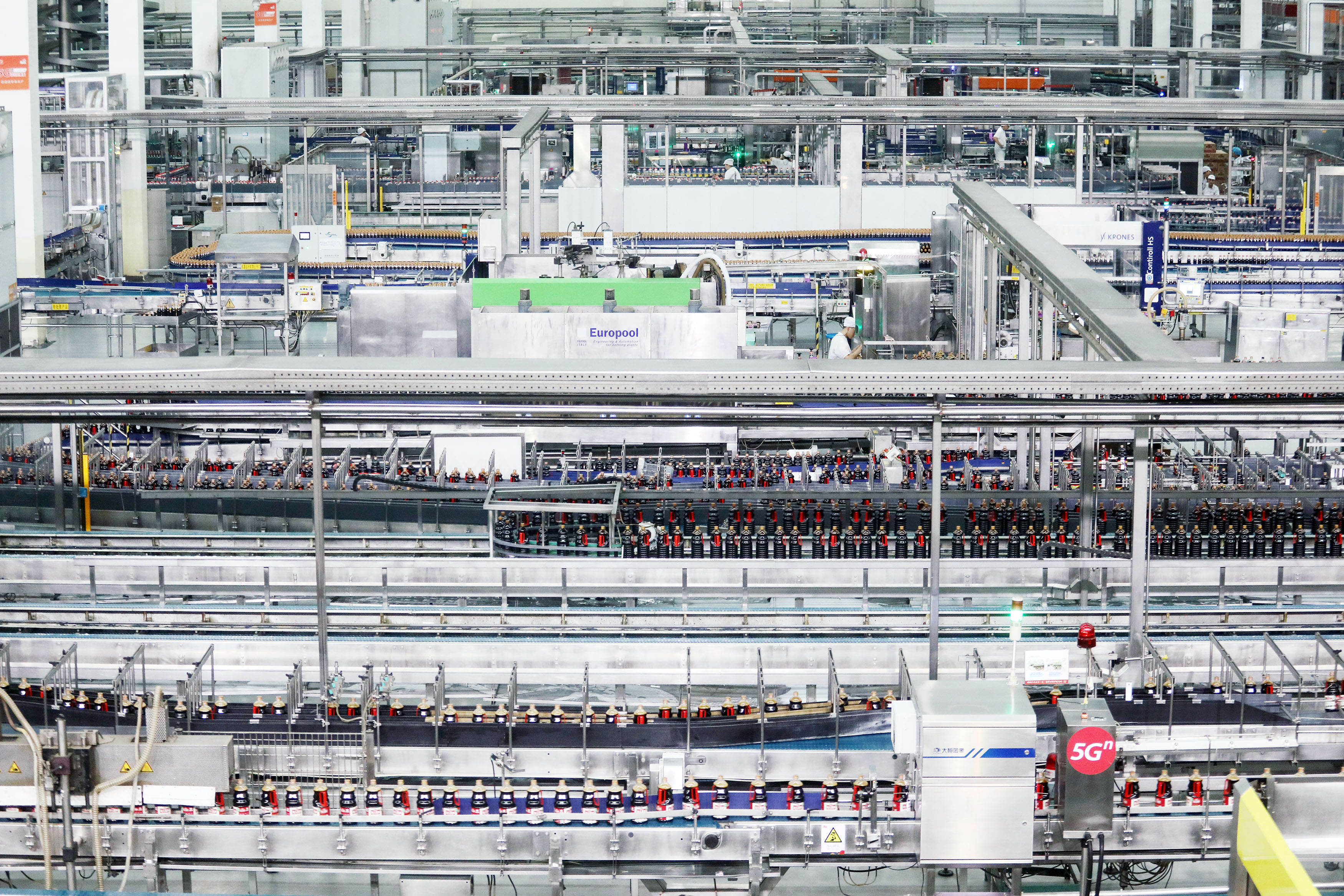 在一个如此依赖“老师傅”的行业,海天是如何做到将5G、AI、大数据等技术覆盖到每一个生产工序?从20世纪90年代开始,海天便启动了数智化探索,率先启动酿造生产线全面自动化,将传统酱油酿造中相互独立的工序自动化串联,不断提升生产效率。如今,海天酱油产线更是最快每小时能产出5.2万瓶。