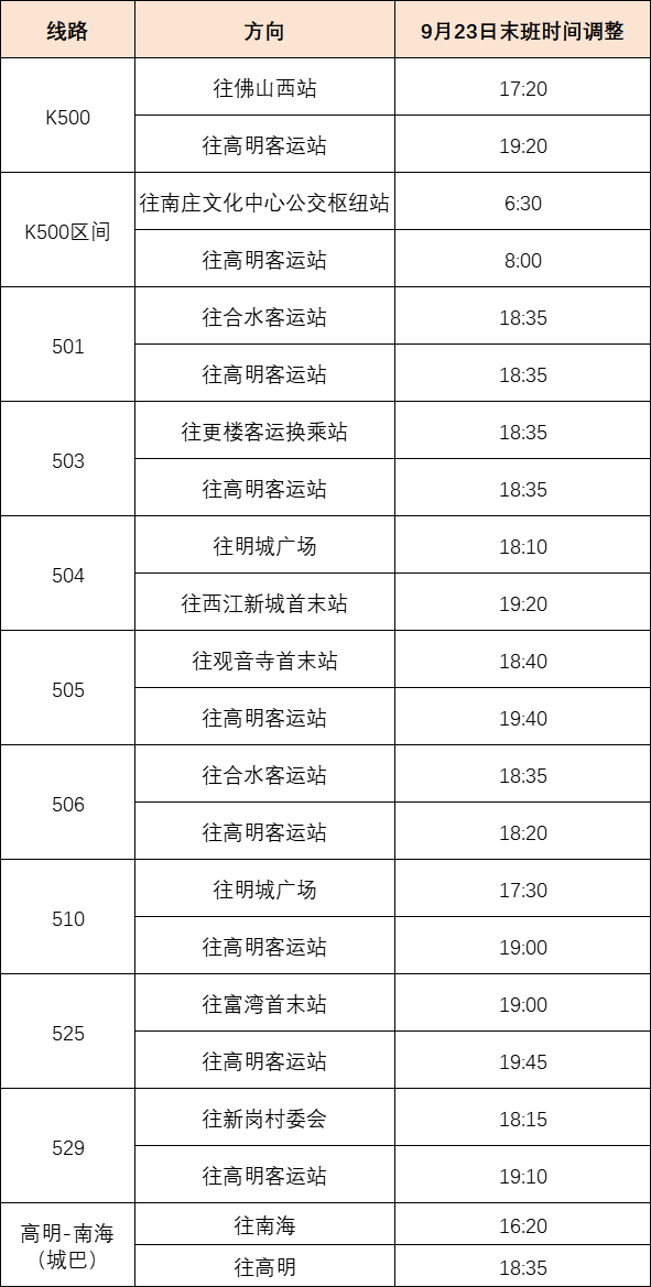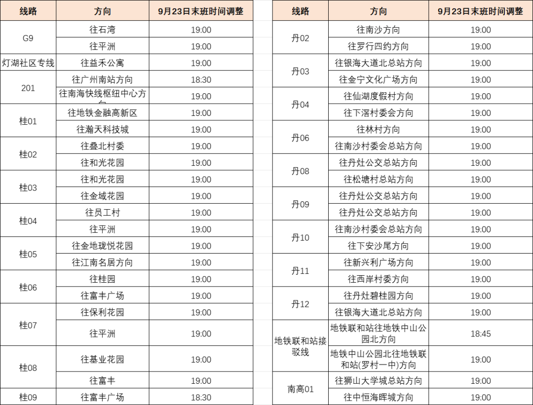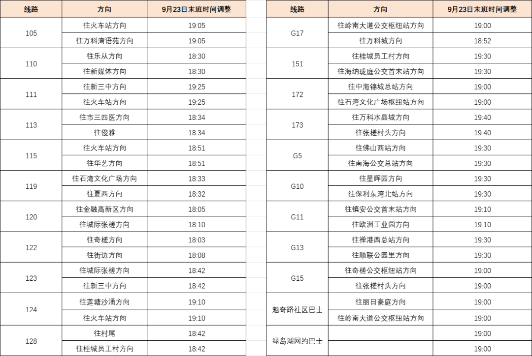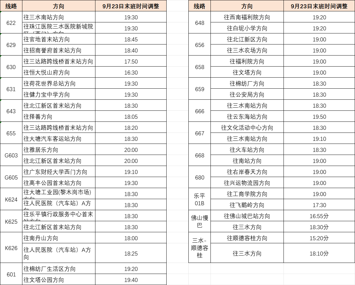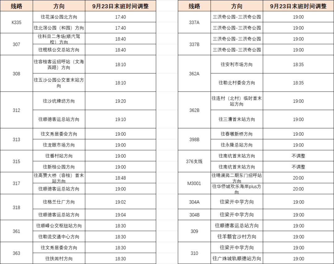 一、9月23日,以下线路末班运营时间调整。