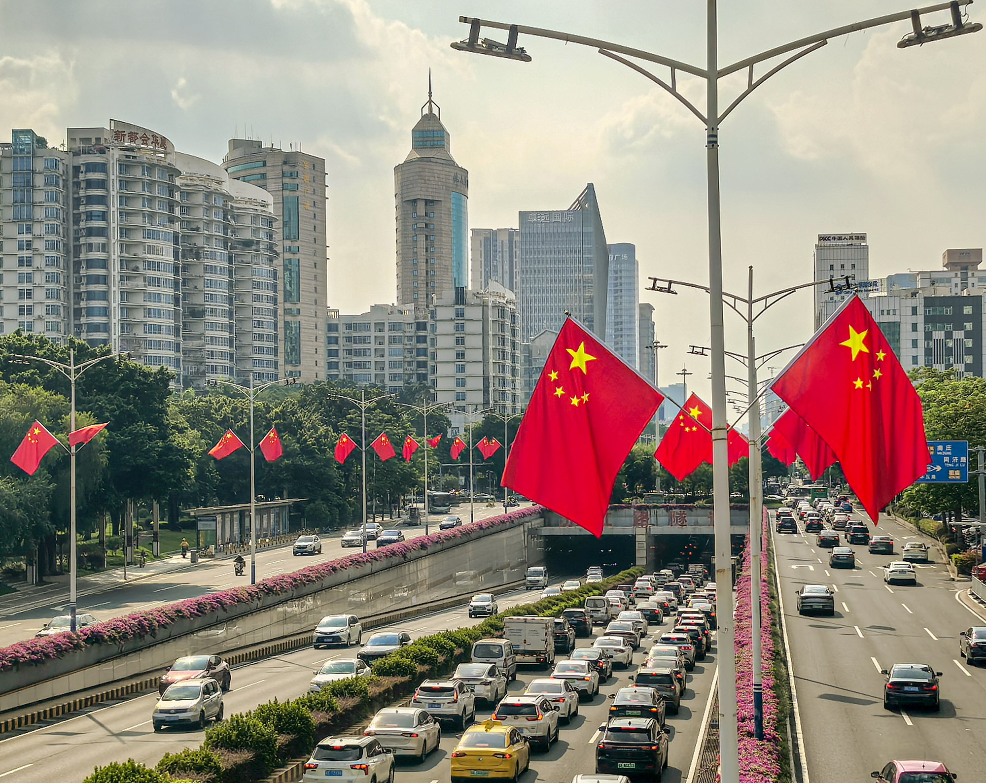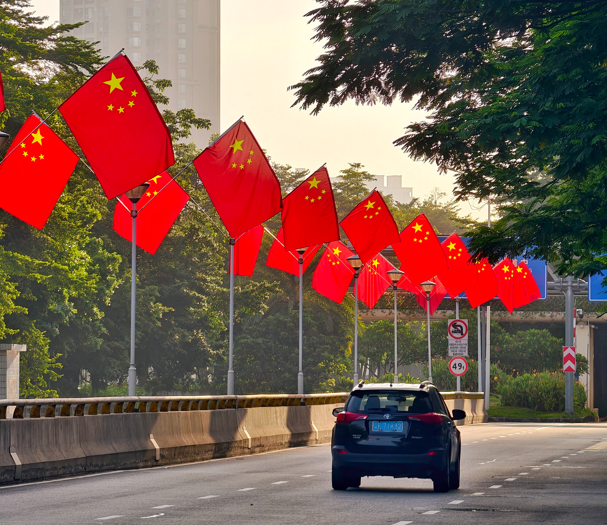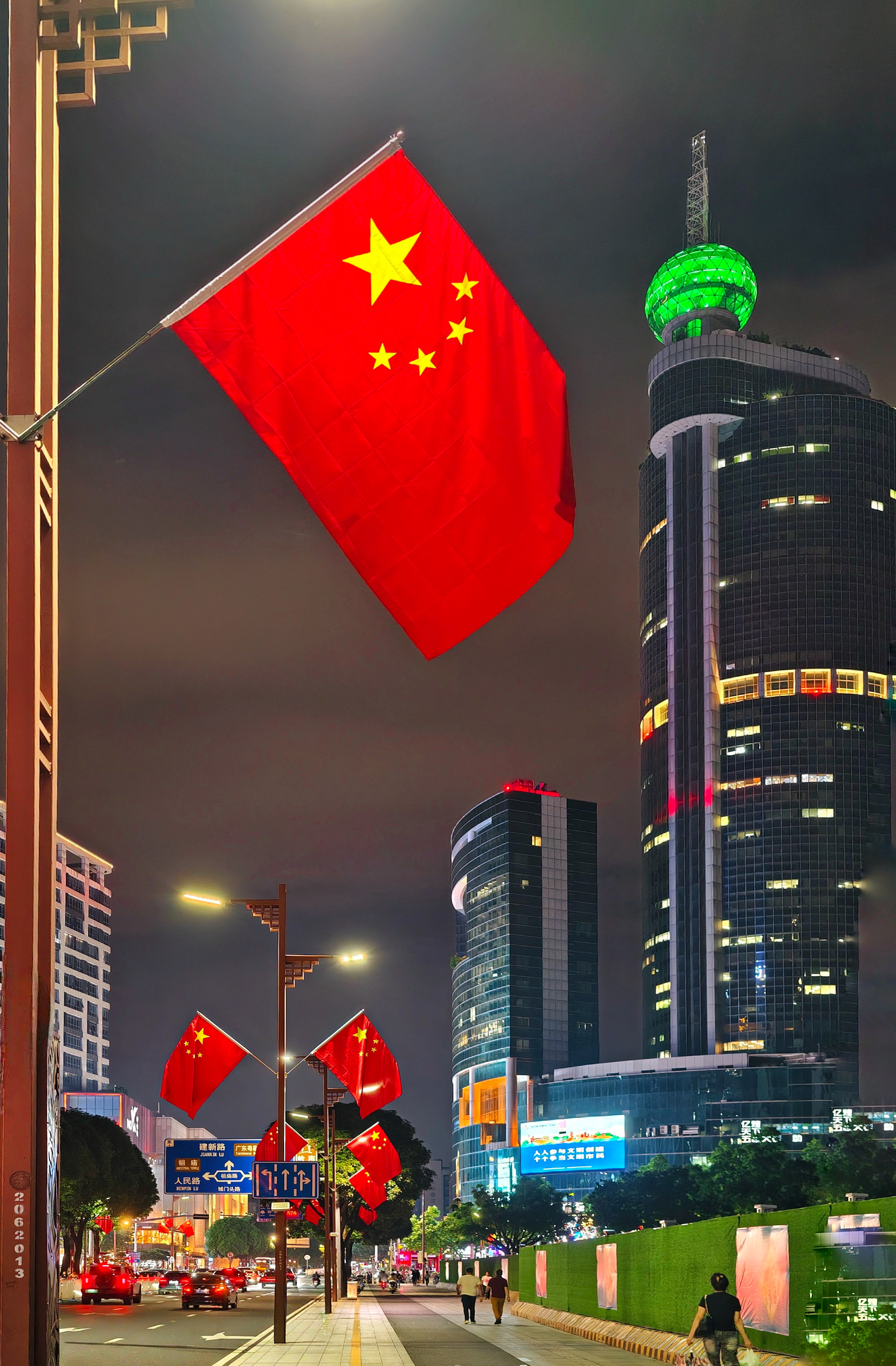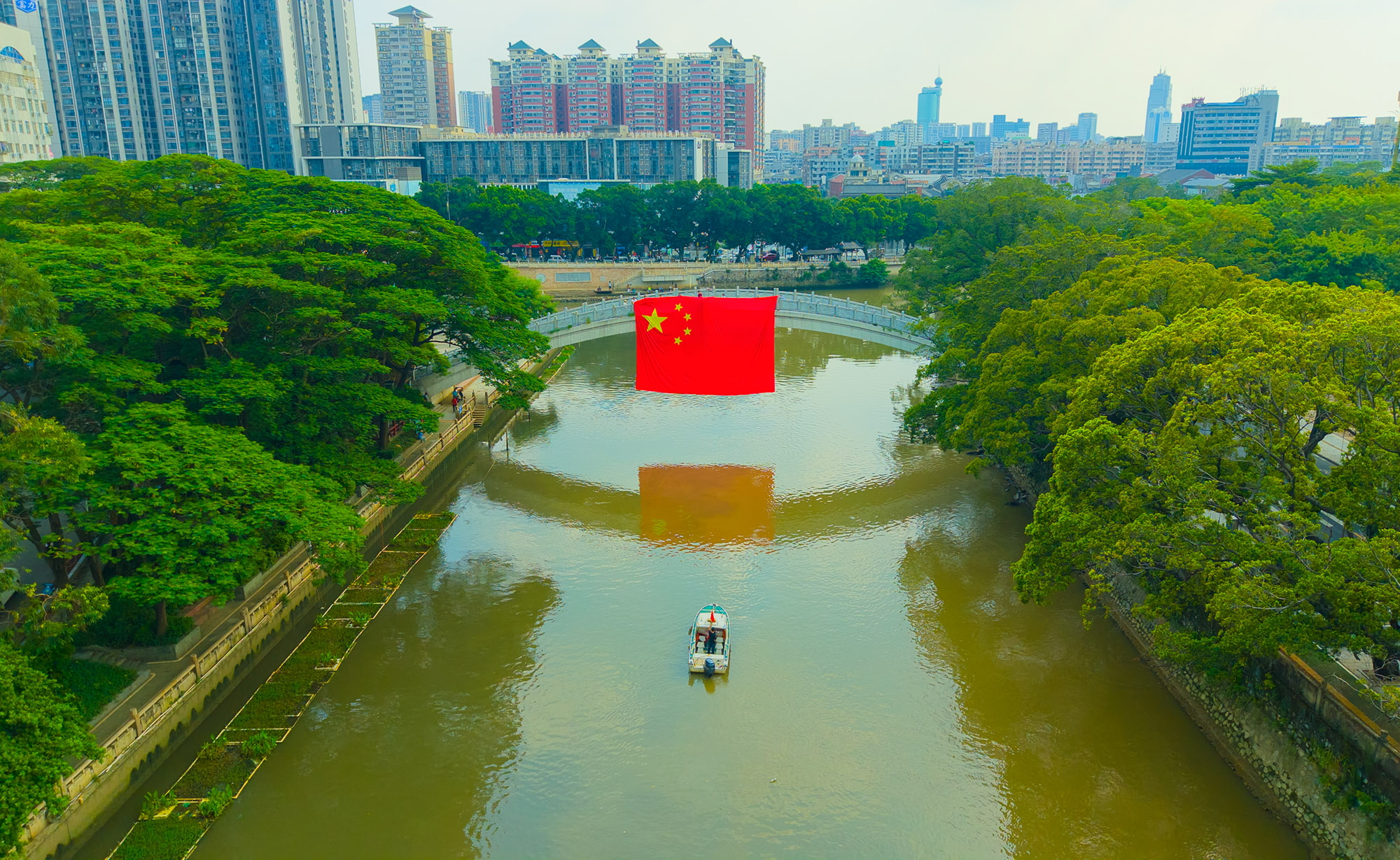 10月1日是国庆节,鲜艳的国旗飘扬全城。禅城区岭南大道、季华路等主干道,南海海八路、灯湖西路及千灯湖畔,国旗沿路灯柱整齐悬挂,营造出浓厚的氛围。