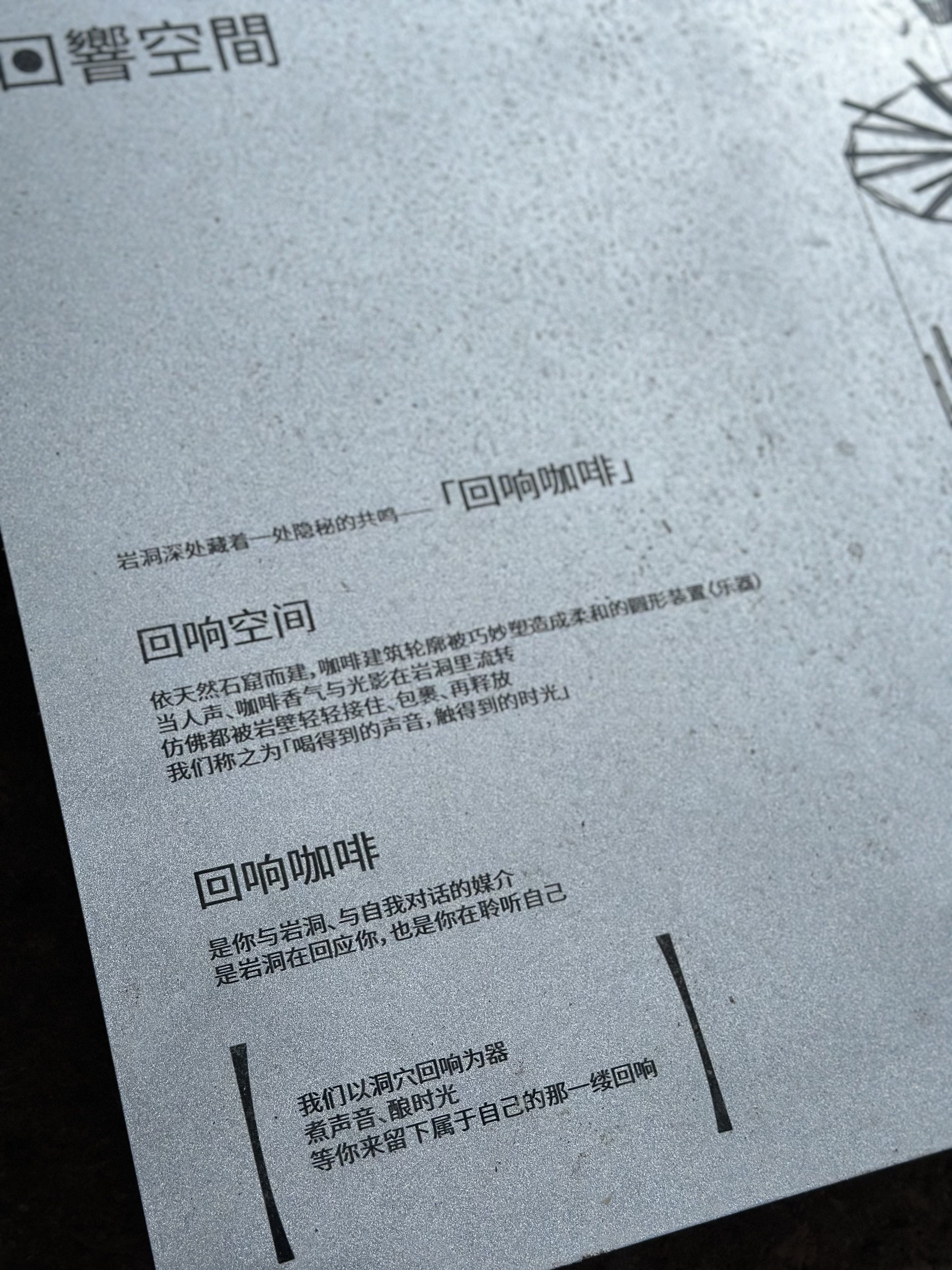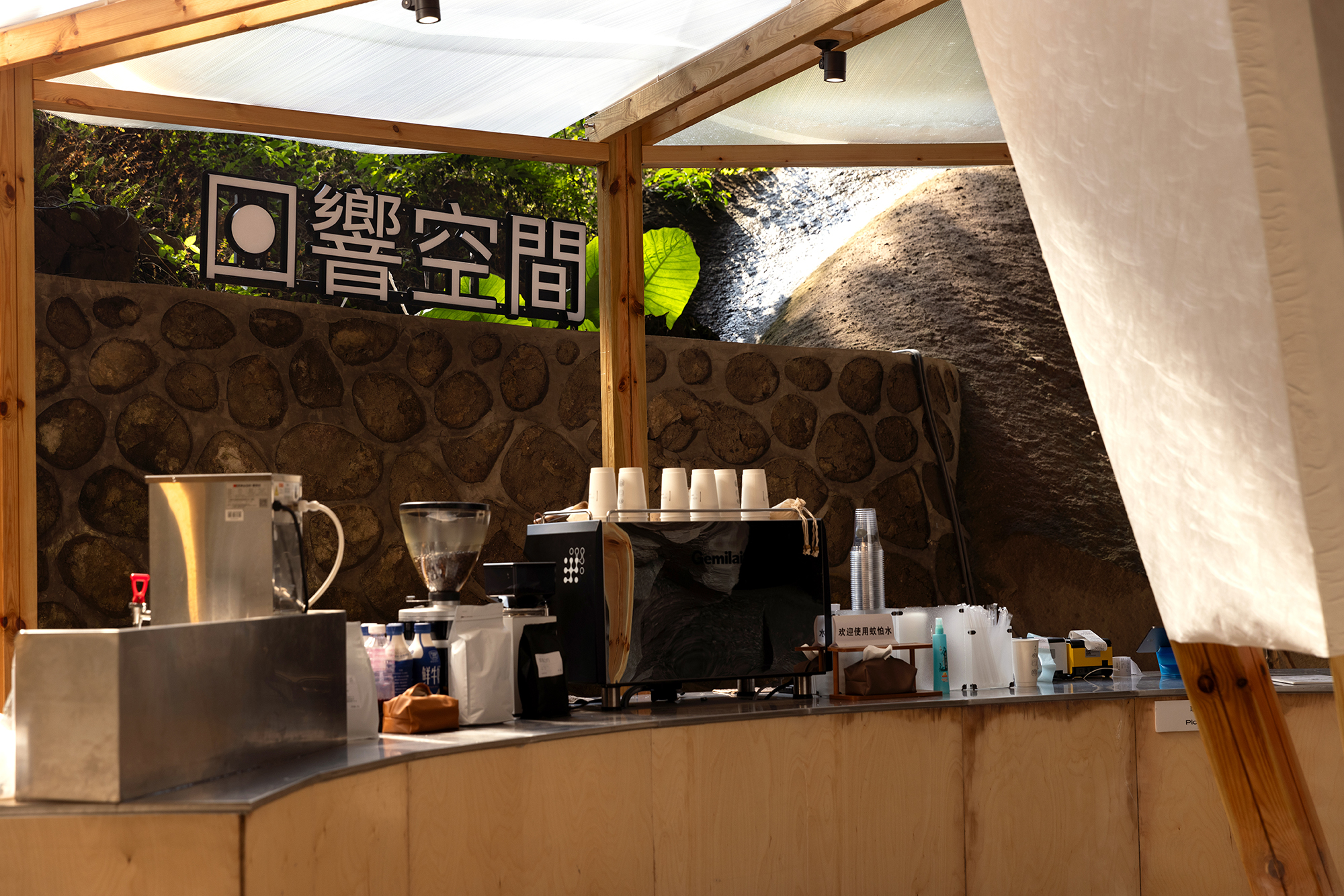 也正是在那一刻,他们萌生了在此冲煮咖啡的想法——仿佛手中的咖啡就是一束光,而他们正在世界的裂缝里“煮”这束光。“于是我们就有了‘回响空间’这个想法,寓意在此处的每一次内心对话,都能产生悠长的回响。”