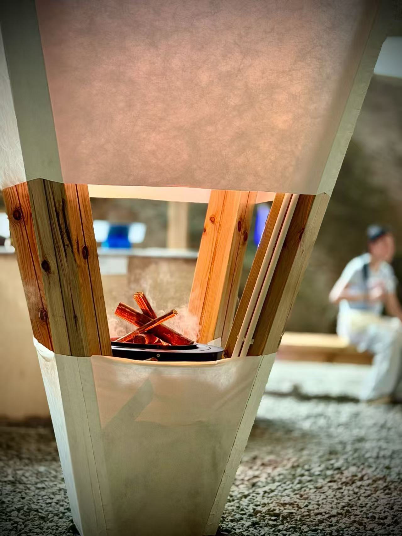 没有了音乐,团队选择在装置的中间设计了“火炉”,营造出围炉夜话的“篝火晚会”氛围,巧妙地为前往的市民朋友搭建一个社交场景,促进了人与人之间的交流。