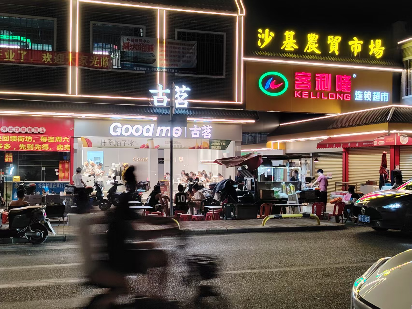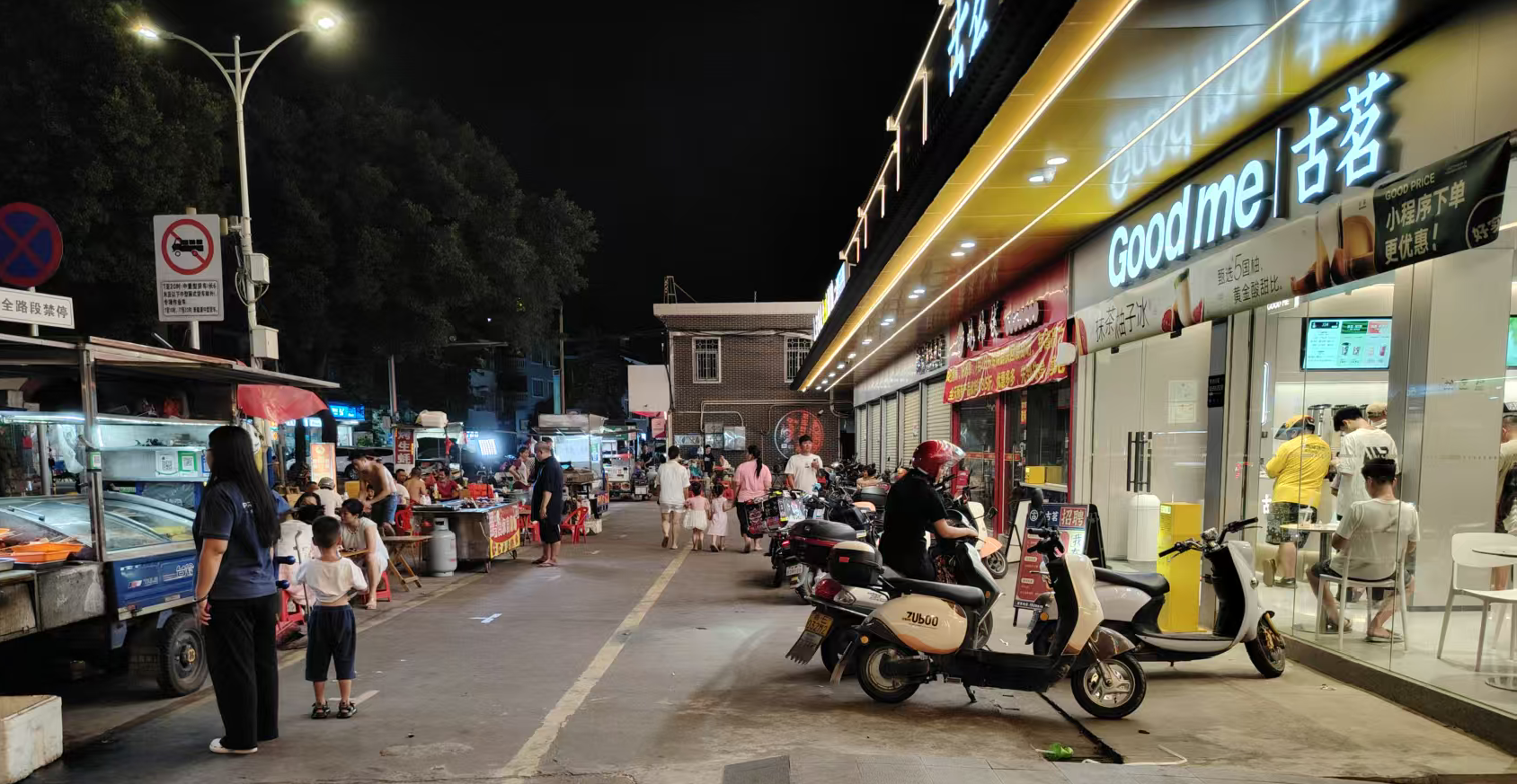 模式一改,古村氛围立马变了,不仅超市里人头攒动,还开起来夜市,吸引来了外卖小哥。