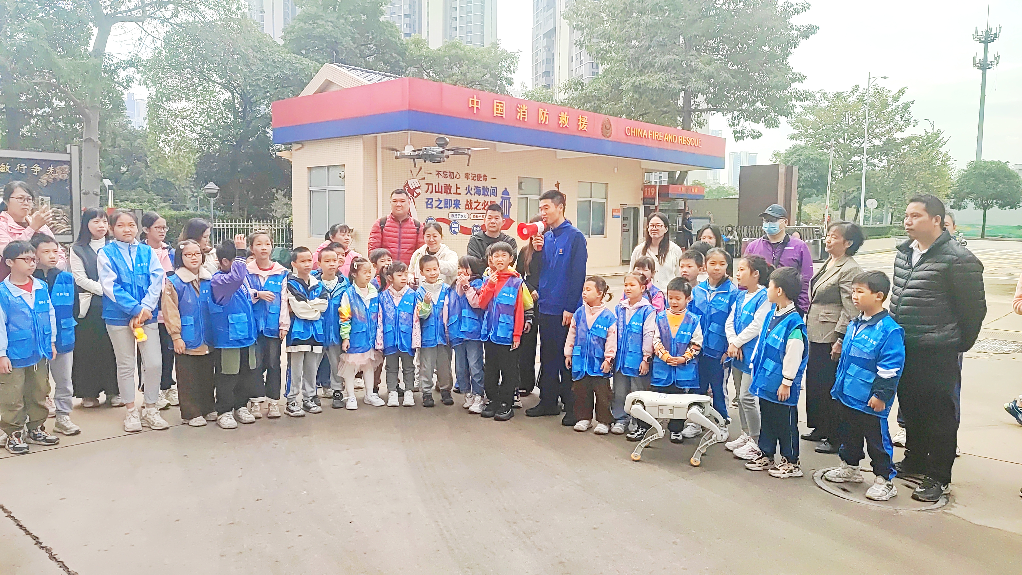 智能机器狗灵活演示,无人机高空精准侦查……11月14日上午,一场融合科技与实战的“消防小蓝宝 安全我知晓”——2025年禅城区亲子秋假安全研学活动在环湖消防救援站开展。