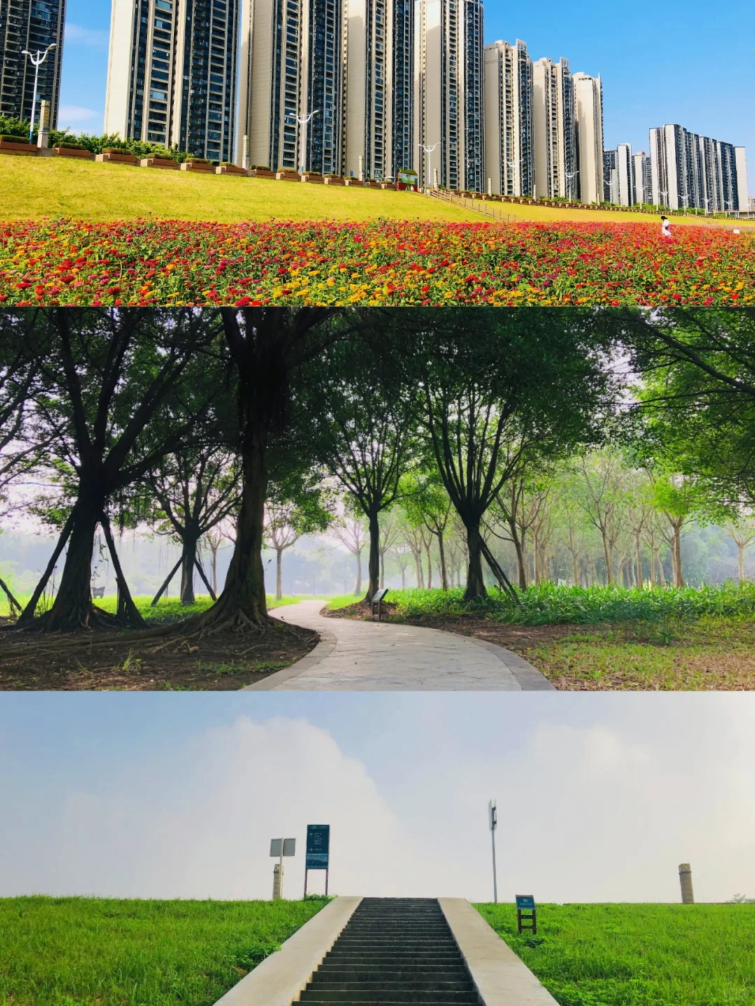 关键词:花海、草坪、健身