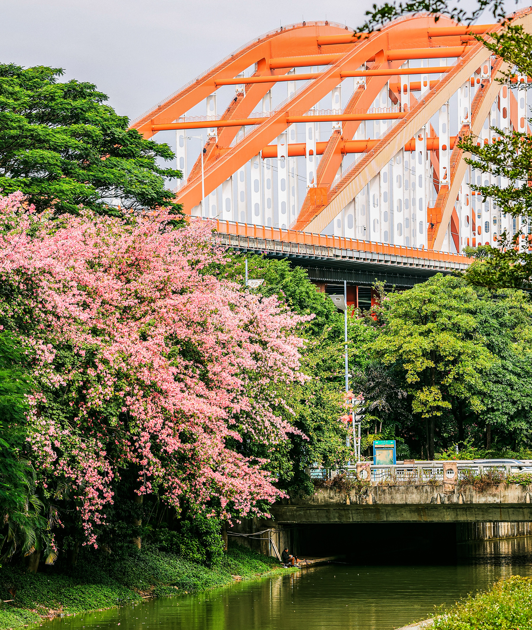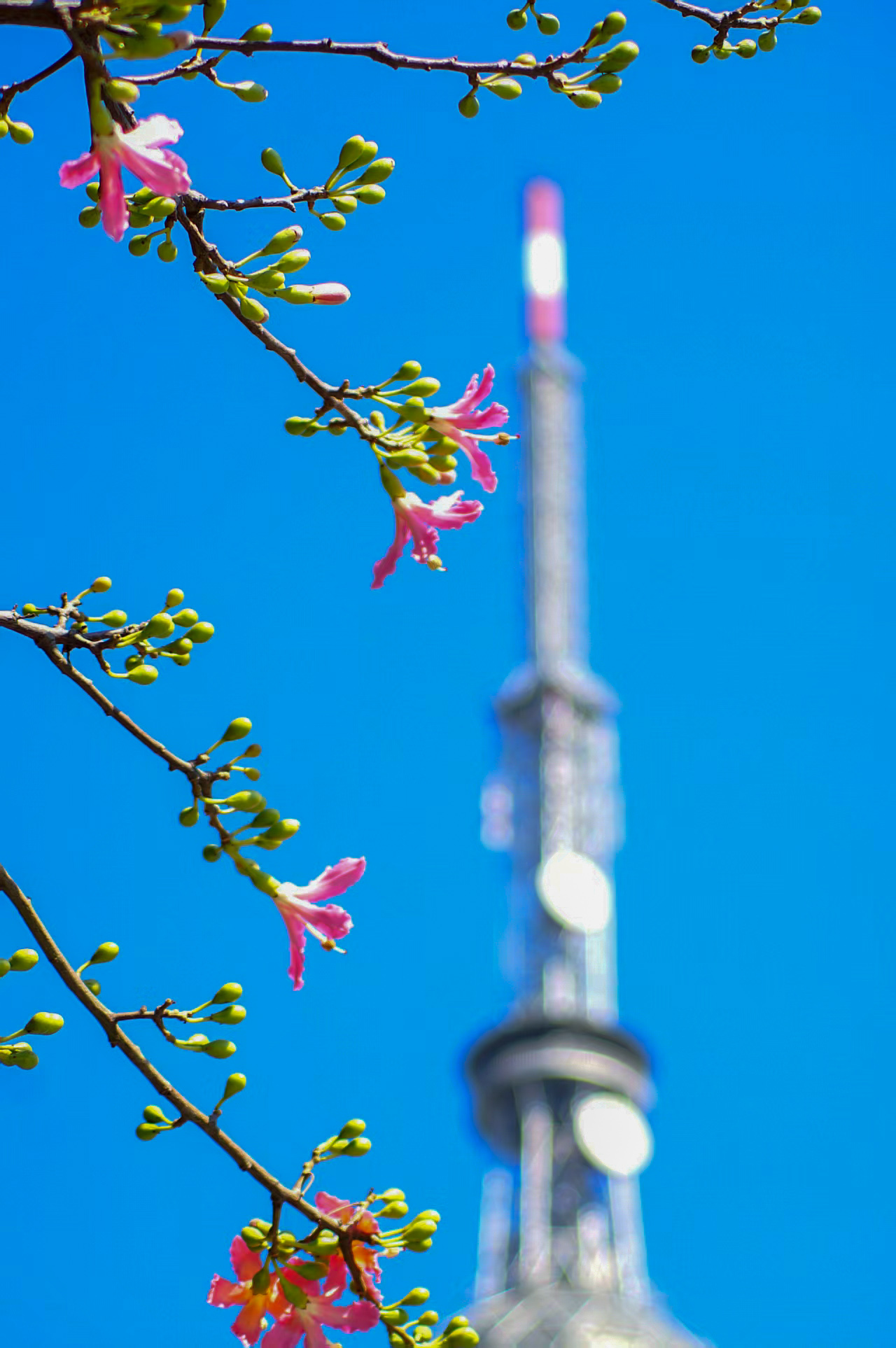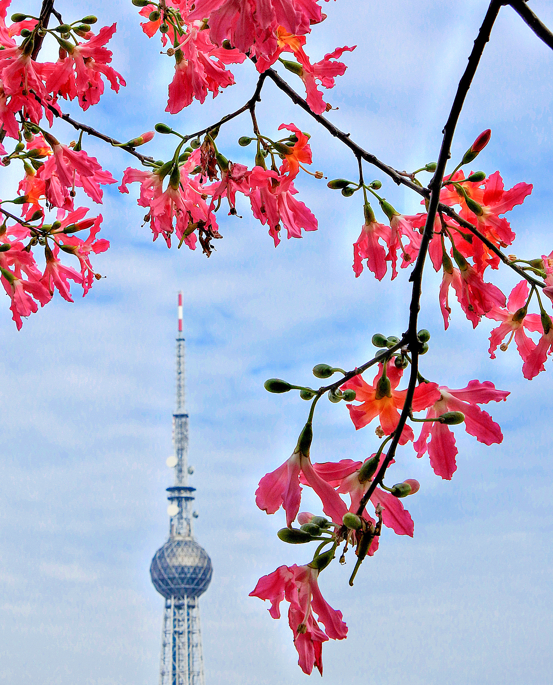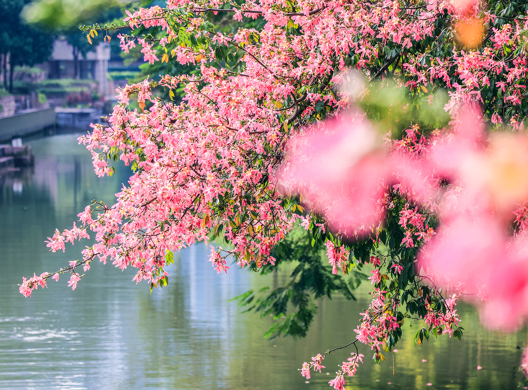 近日,佛山化身 “浪漫花城”,街头、公园的美丽异木棉进入盛花期。粉白相间的花朵缀满枝头,花多叶少如霞似雪,顺峰山公园、石湾公园、街边步道等处皆是美景。暖阳下,花枝与蓝天相映,花瓣随风轻舞,市民纷纷驻足打卡,让秋冬时节的佛山满是温柔气息,成为城市里最治愈的风景线。