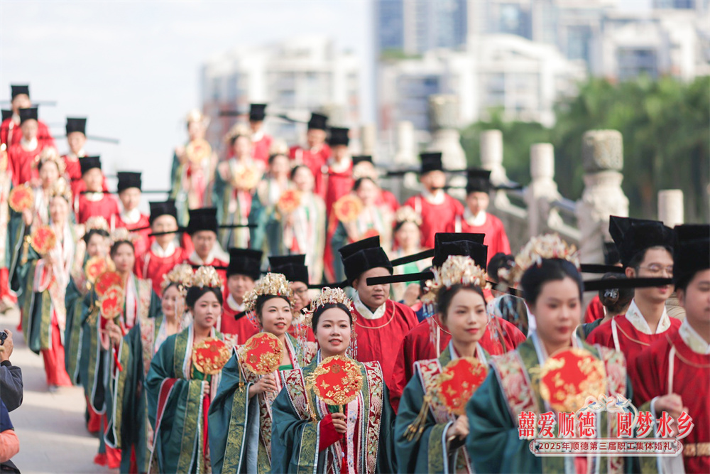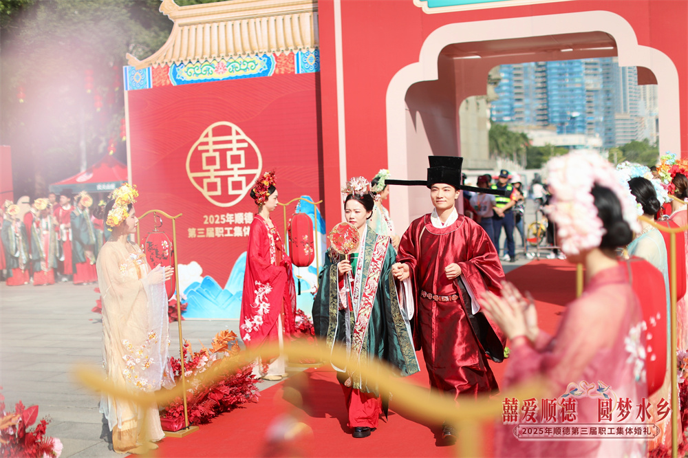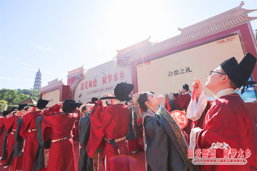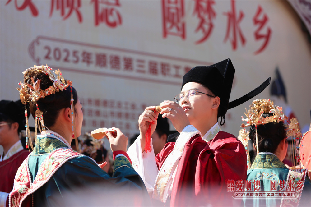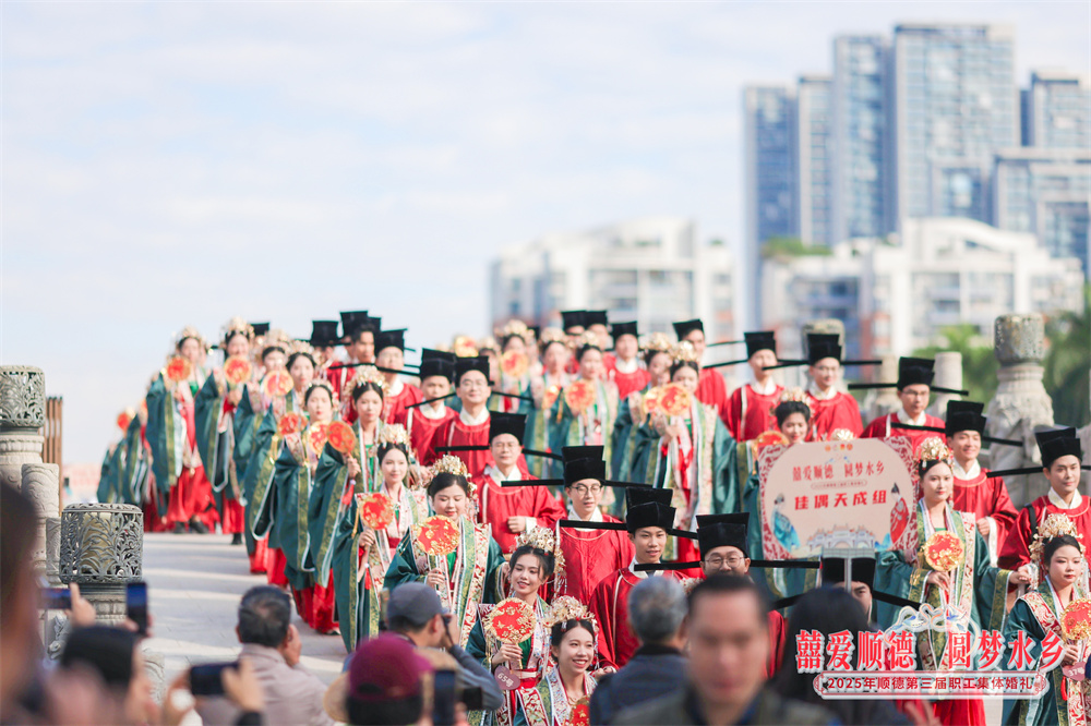 一场集体婚礼,让职工新人们既感受到了传统文化的魅力,又见识了顺德产业发展的活力,也是与顺德这座城市的一次“双向奔赴”。顺德不仅具有作为“世界美食之都”“中国家电之都”的经济硬实力,更有着尊重人才、关爱职工、崇尚简约、富有文化底蕴的城市软实力。