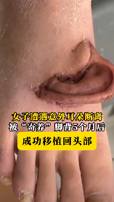 女子遭遇意外耳朵断离,被“寄养”脚背5个月后, 成功移植回头部!