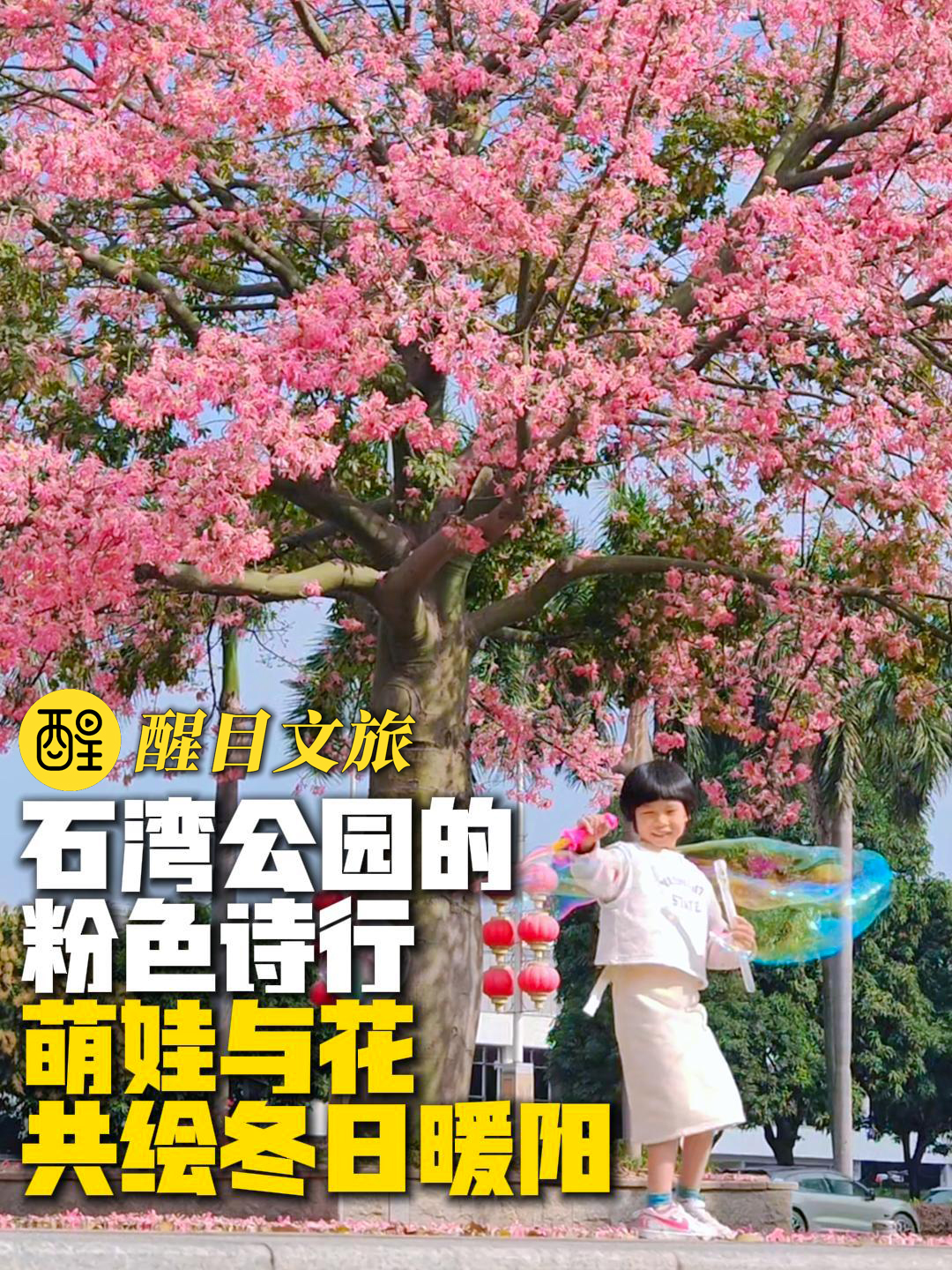 石湾公园的粉色诗行,萌娃与花共绘冬日暖阳。(编辑:王澍;责编:崔锦玥;素材来源:网友@Look.美禅城)#佛山禅城#异木棉#石湾公园#萌娃