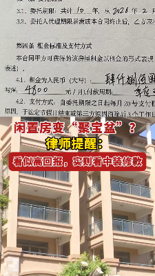闲置房变“聚宝盆”?律师提醒:看似高回报,实则看中装修款!