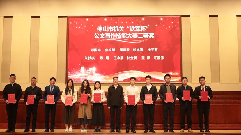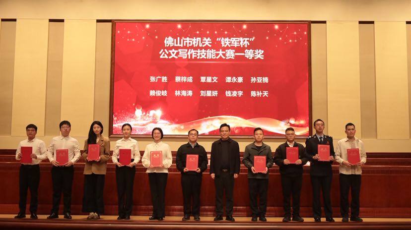 12月5日,佛山市直机关工委联合市委政研室共同举办第三届“铁军杯”公文写作技能大赛现场点评及颁奖会,会上宣读了大赛获奖名单,市直机关工委、市委政研室相关领导为获奖选手颁发了荣誉证书。
