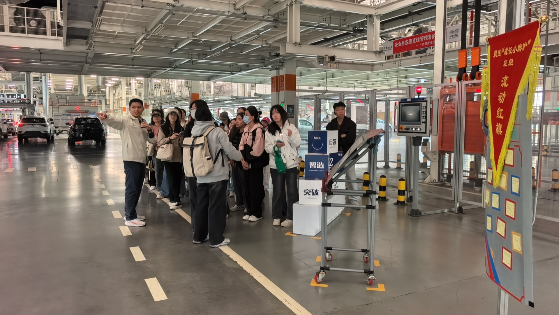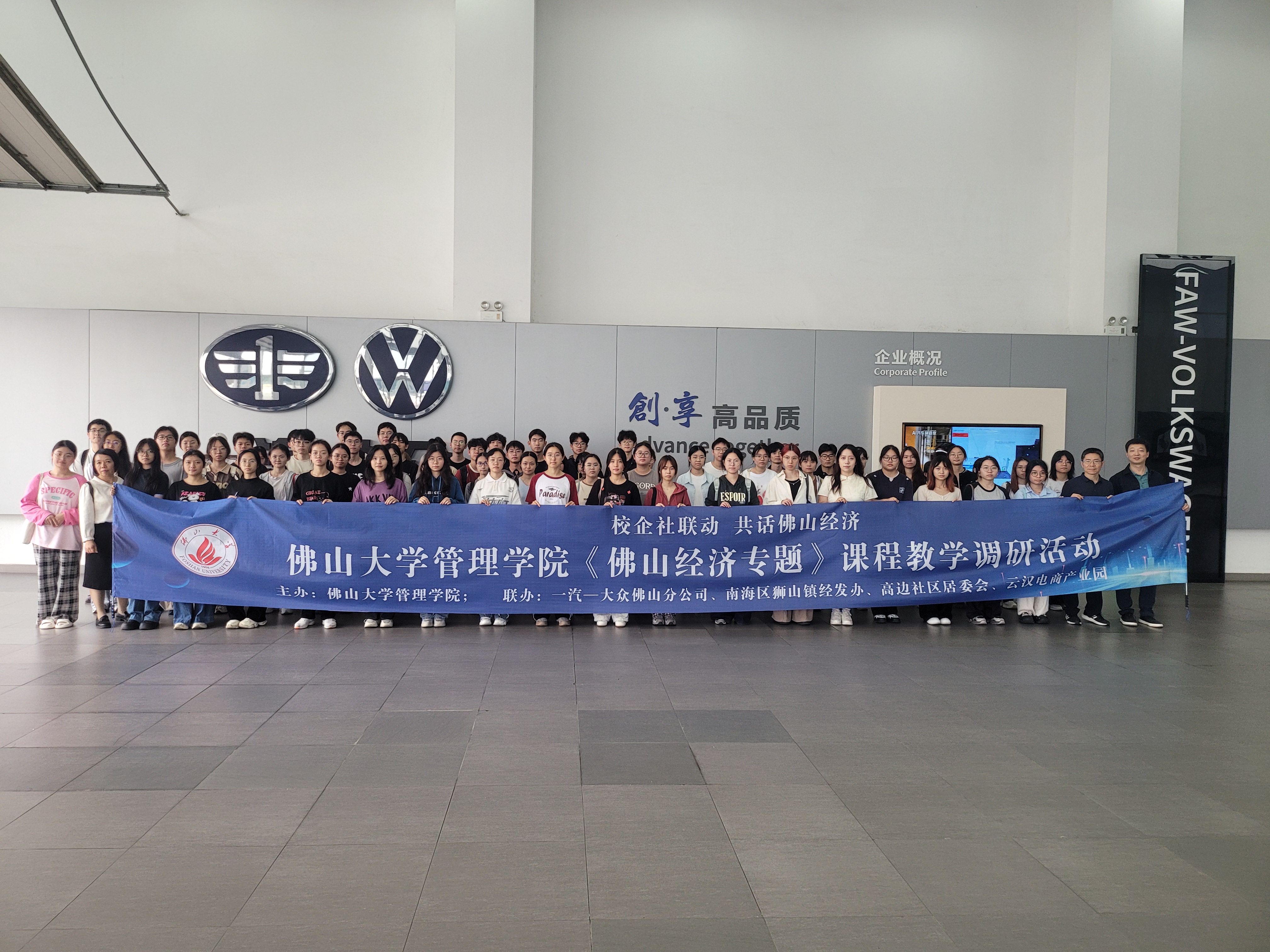 本次活动以一汽-大众华南基地与高边社区璜溪古村为实践载体,构建了一场跨越时空的奇妙之旅。作为世界500强车企的智能制造标杆,一汽-大众华南基地展现了佛山现代工业的硬核实力。其自动化生产线、数字化管理平台等先进技术,彰显了佛山制造业向高端化、智能化迈进的坚定步伐。踏入一汽-大众华南基地,同学们便被其庞大的规模和先进的技术所震撼。