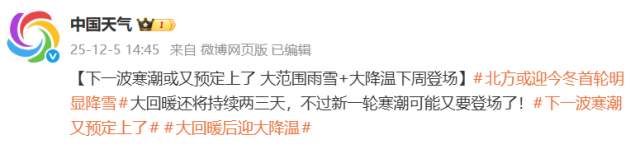 据中国天气网消息,全国这波大回暖后将迎大降温,新一轮寒潮又要登场了!