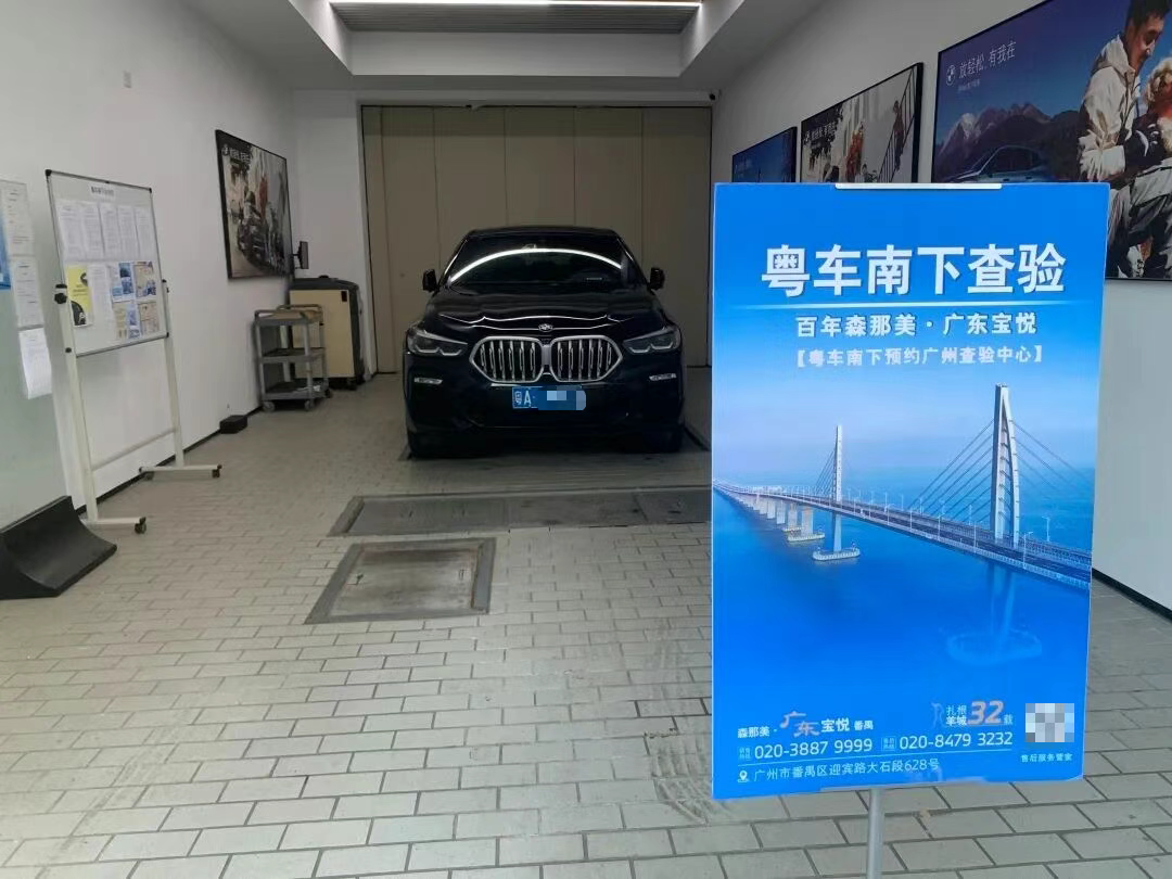 在广州市番禺区广东宝悦的查验点,专门设立了查验区内,并竖立了清晰的“粤车南下”指引牌。