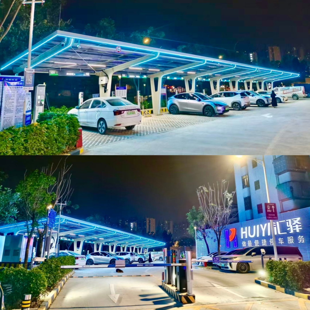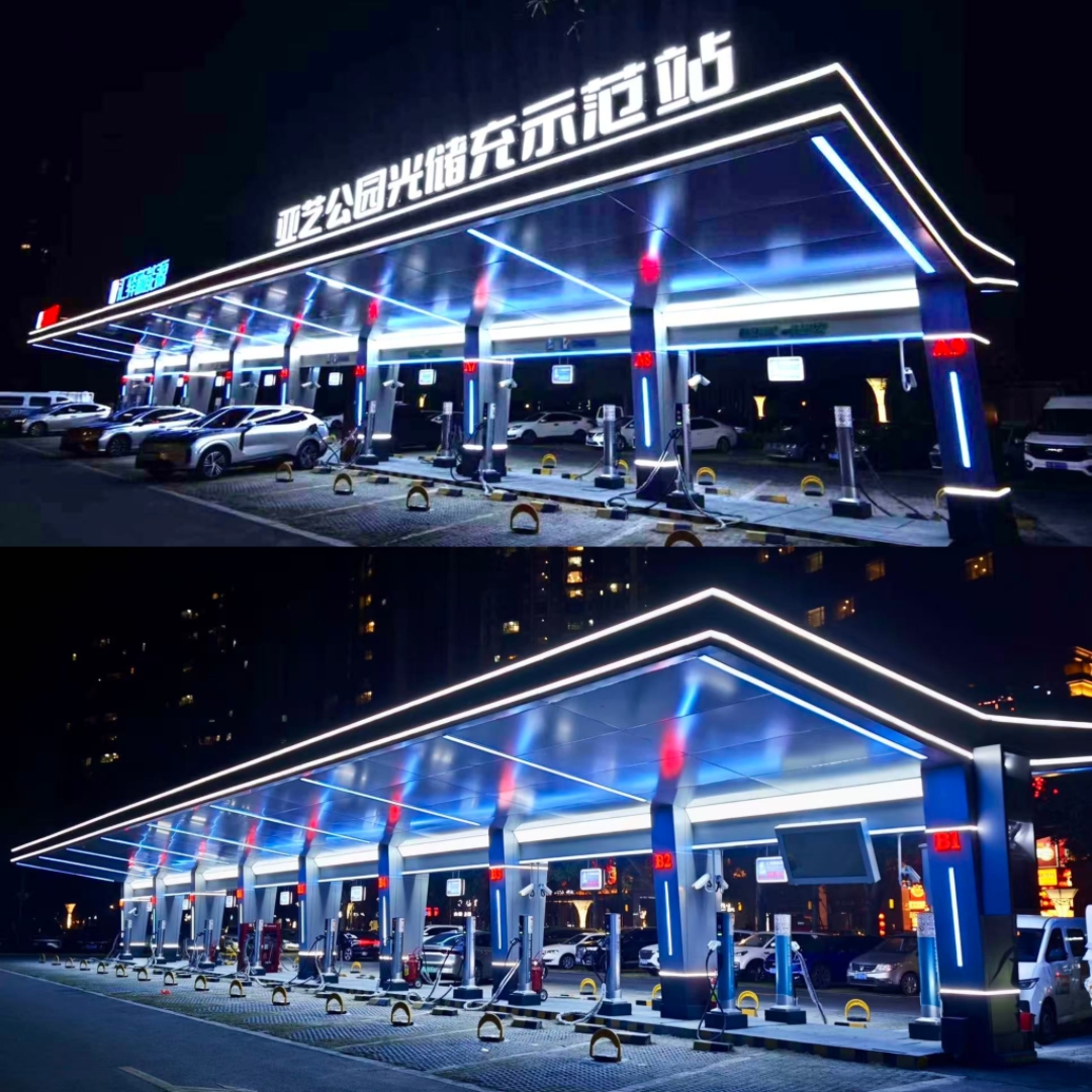 亚艺公园光储充示范站夜景。