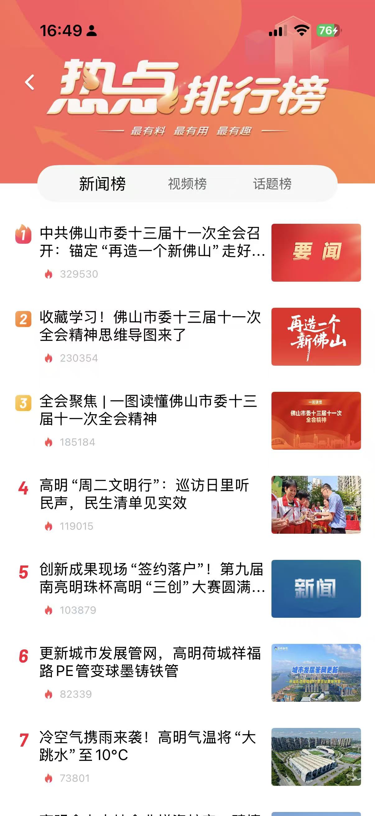 【开栏语】资讯满天飞,热点无厘头?沉迷于工作,没空看热搜?小嘉来帮你!佛山+推出《热点风向标》栏目,每天傍晚时段为你梳理佛山资讯热榜、全网热搜,让你一文看遍佛山人关注的大事小情。热点风向,你的态度很重要,期待你的一票!