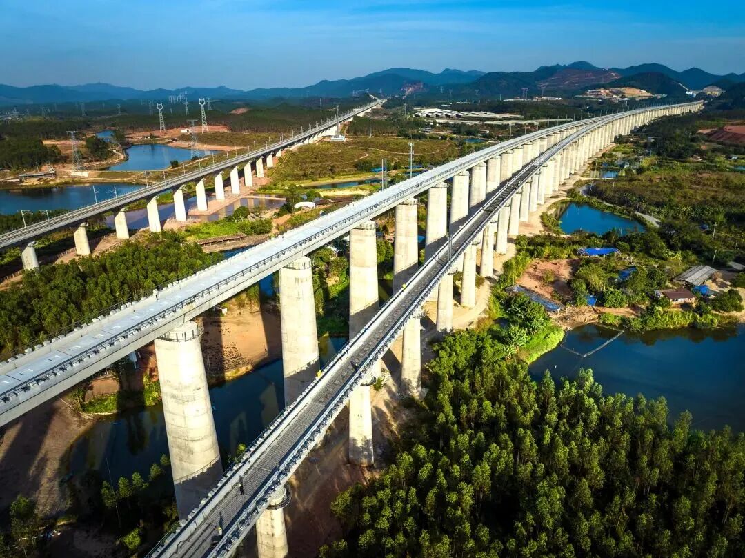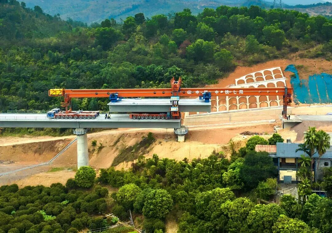 施工过程中,项目部面临着多重挑战:该段线路自东向西穿越佛山市高明区西北部山区,地形复杂多变,施工环境艰苦。同时,为保证箱梁架设任务如期完成,架桥机需在广湛高铁联调联试之前完成120孔并线段单线箱梁架设任务,工期时间紧、任务重,交叉施工难度大、安全风险高。