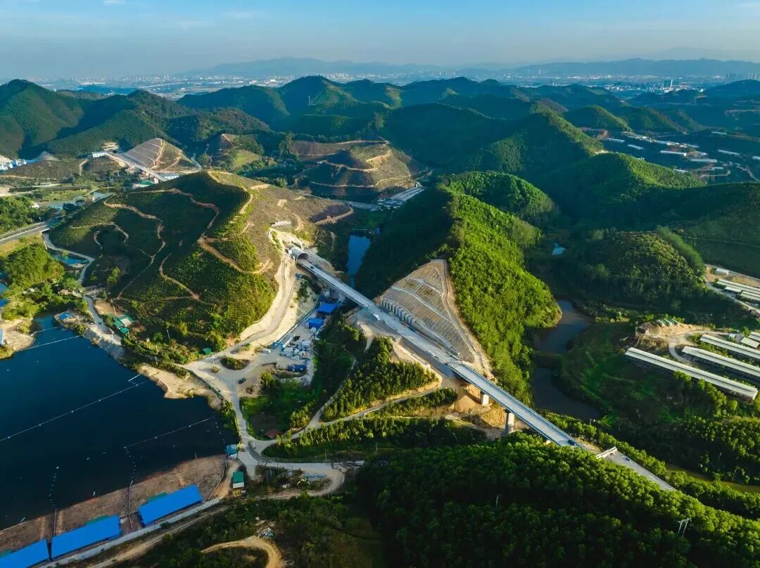 远眺珠肇高铁江机段佛山与肇庆交接施工现场。图源:高明新闻