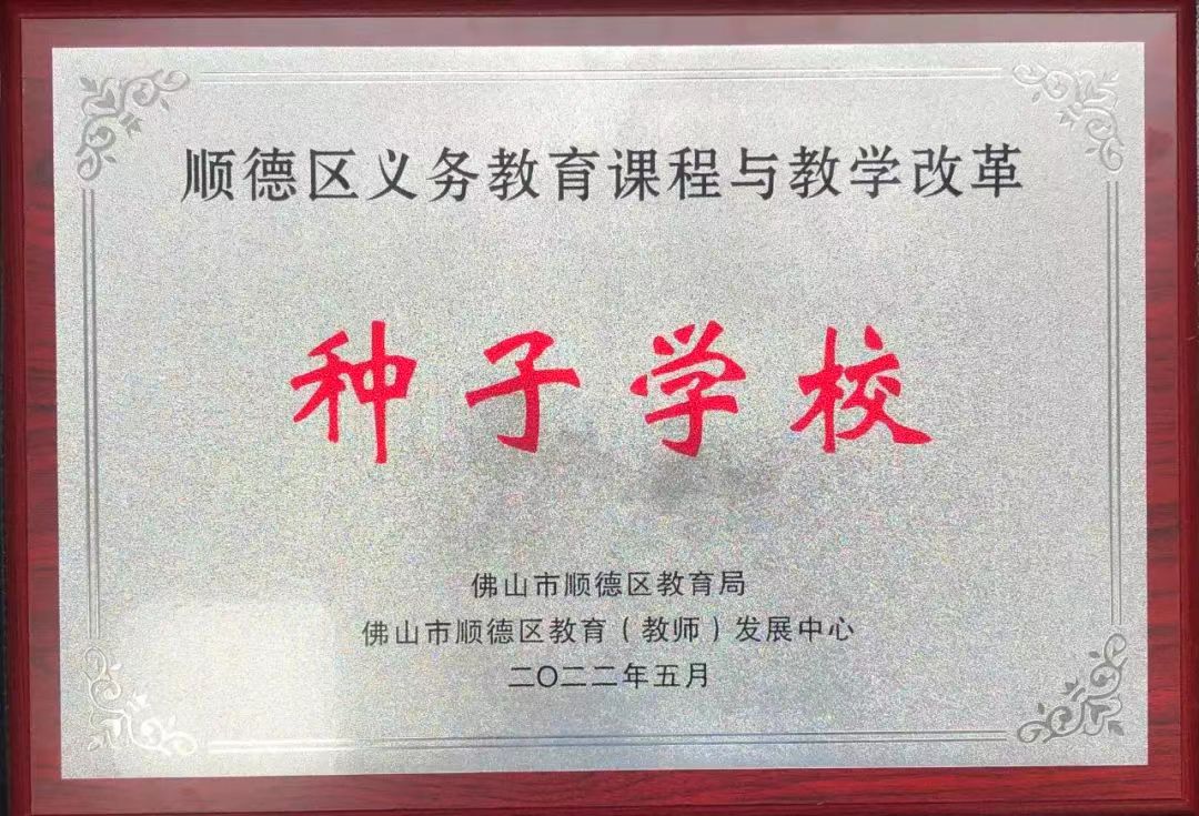 2021年荣获顺德区义务教育课程与教学改革种子学校