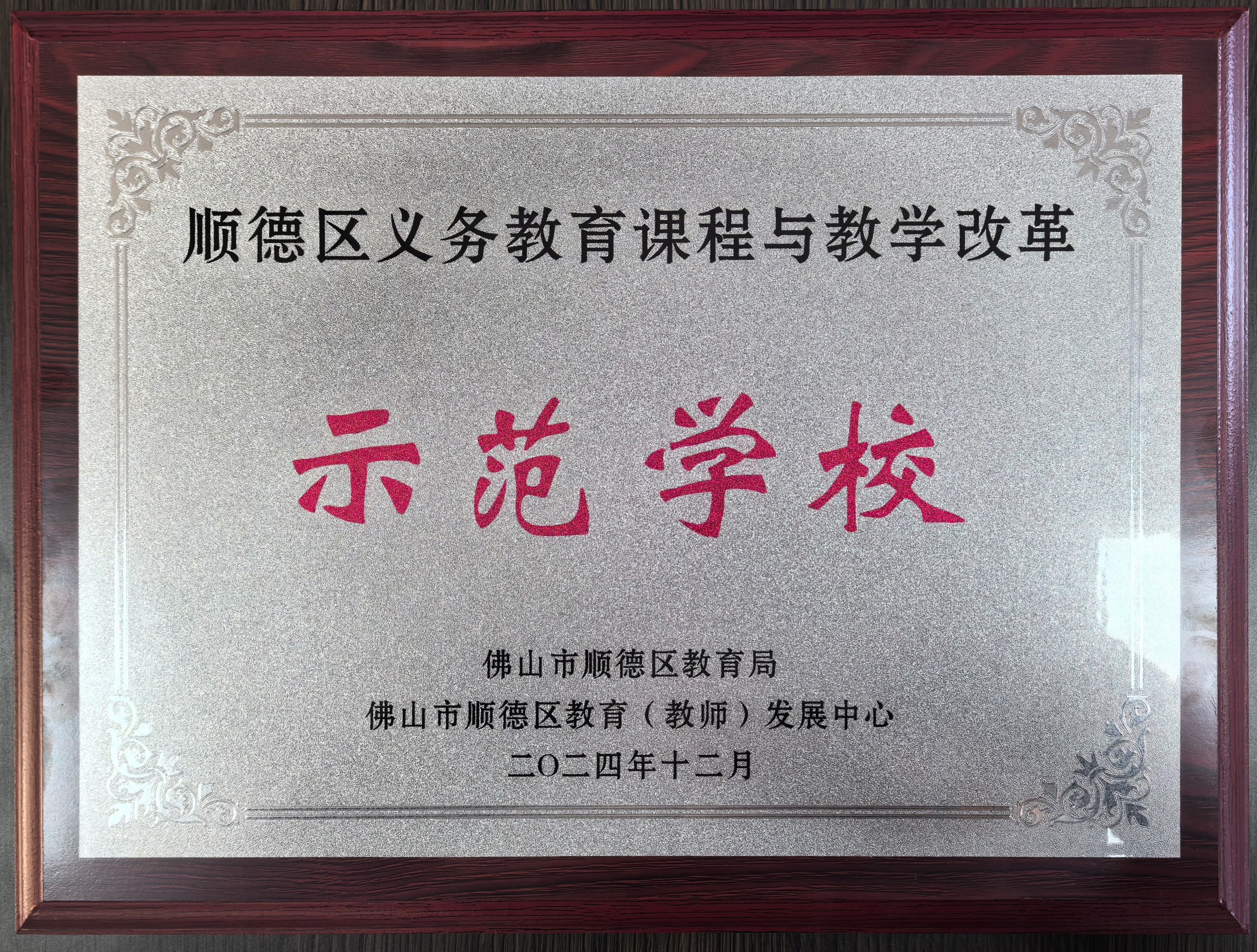 2024年荣获顺德区义务教育课程与教学改革示范学校