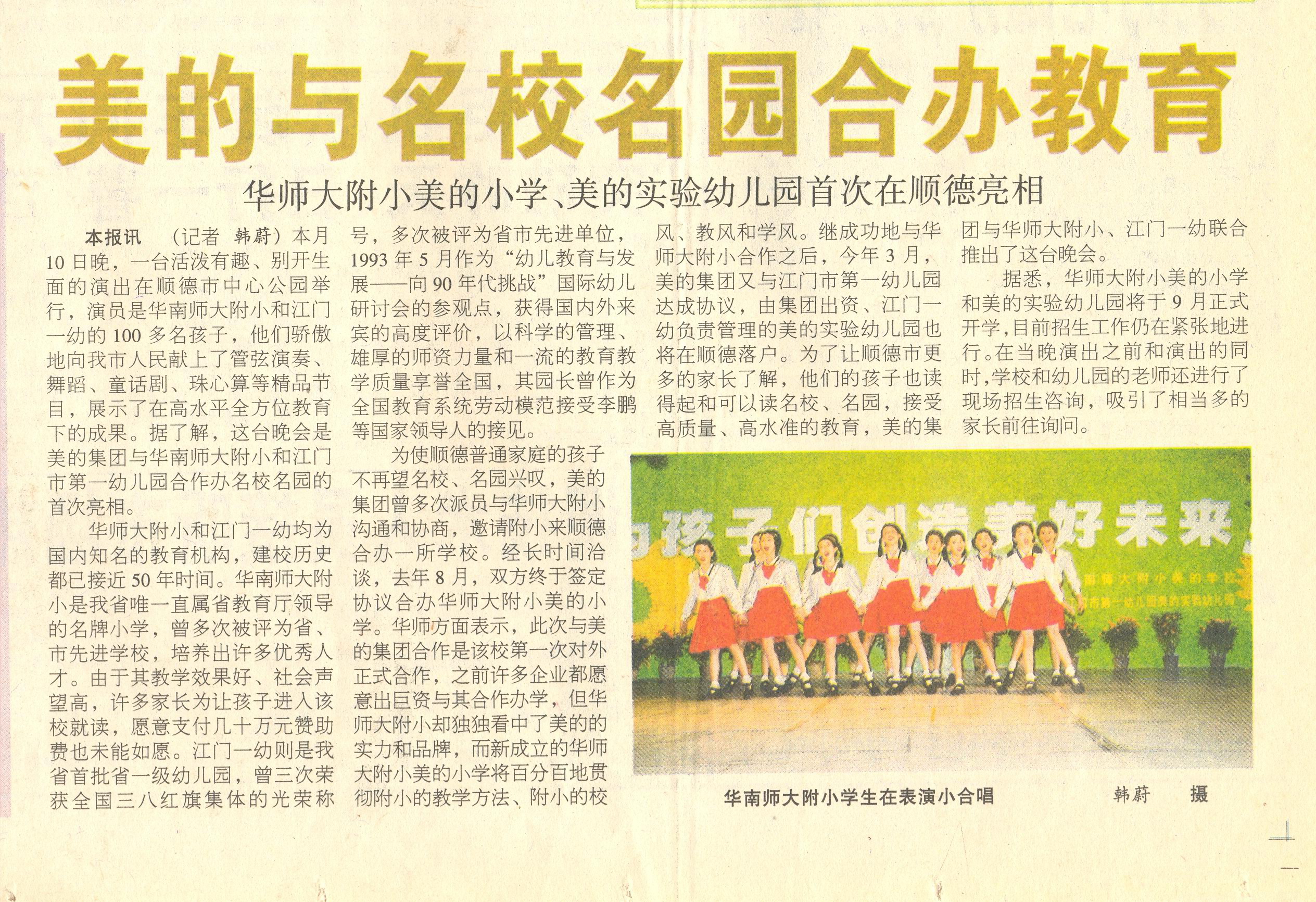 2000年,美辰学校在北滘落地生根,与华南师范大学附属小学携手启航。