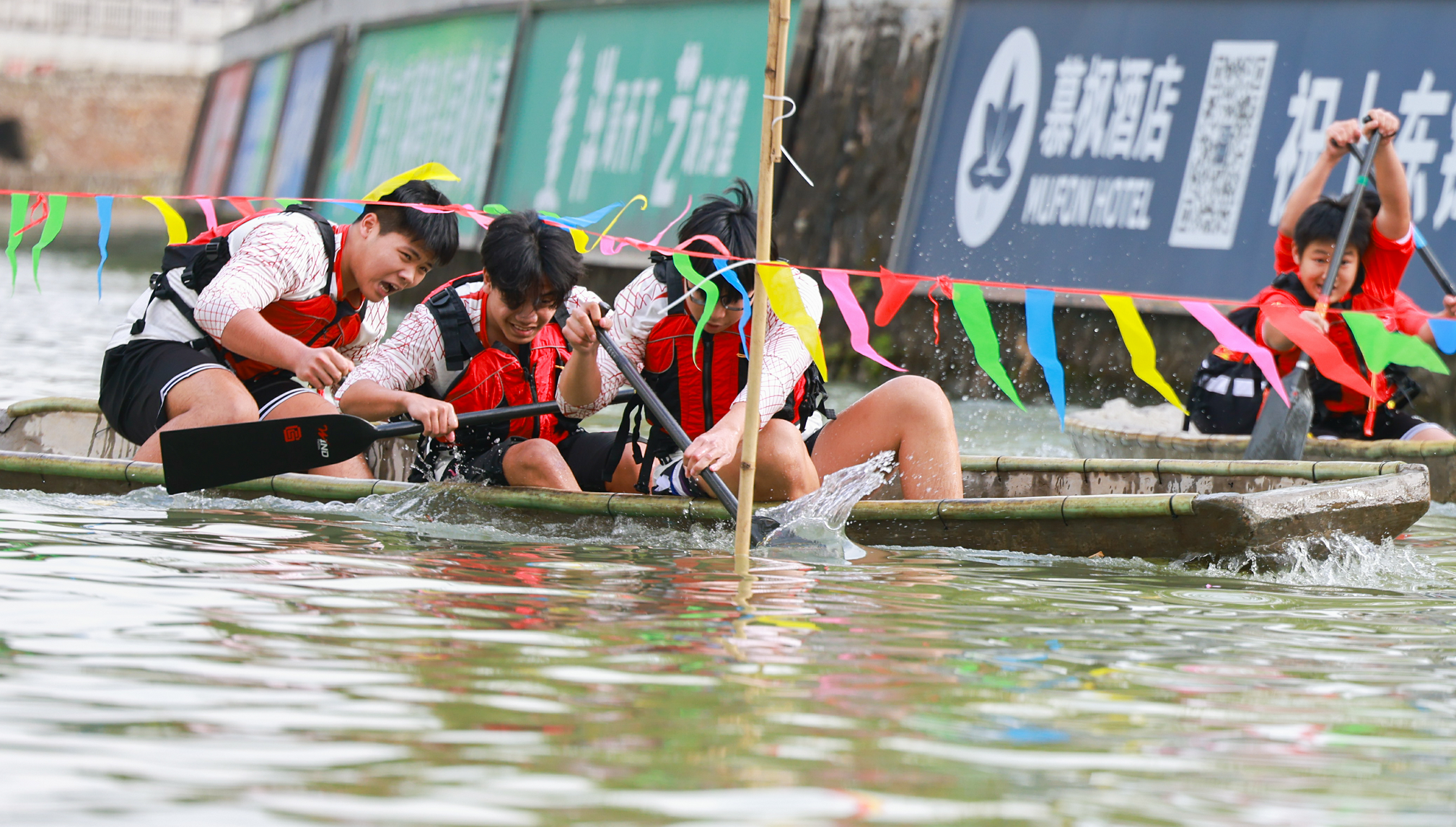 发令枪响的瞬间,清脆的声音划破河畔的宁静。只见少年们弓着腰背,紧握船桨,黝黑的手臂随着号子声稳健起落,桨叶入水激起阵阵水花,草艇载着青春朝气奋勇向前。在这300米直道往返的比赛中不乏趣味瞬间:有的队伍掉头时掌控不佳意外落水,有的因配合稍显生疏撞到岸边,但他们丝毫没有气馁,迅速重整旗鼓继续追赶,引得观众爆发出阵阵善意的欢呼与加油声。