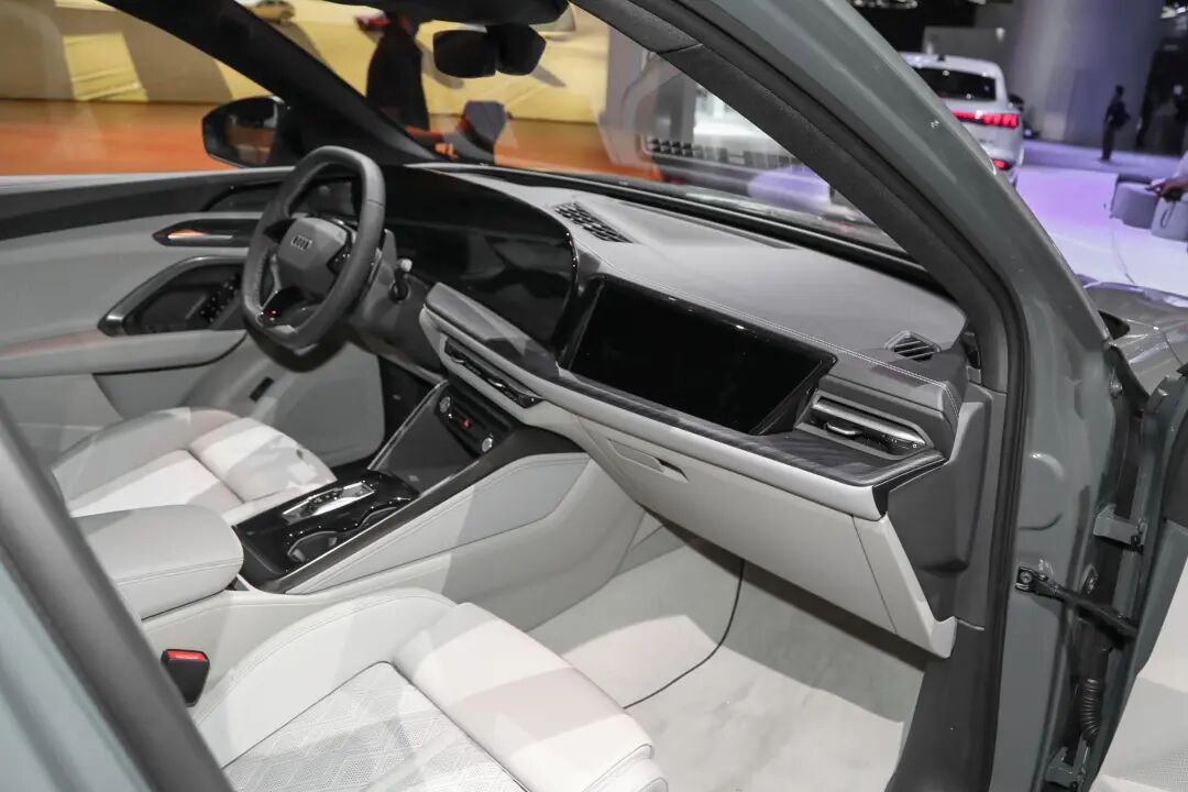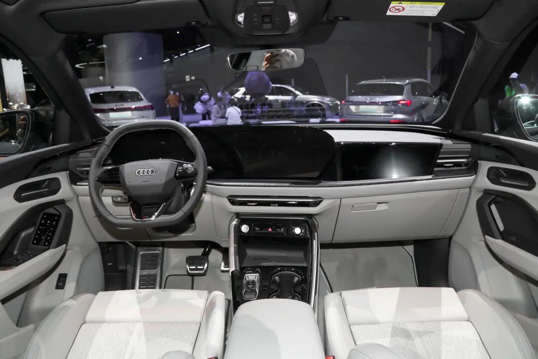 外观方面,新车在现有家族的设计语言上进行创新升级,高位格栅加上狭长的矩形大灯有效拉伸了前脸的视觉宽度,营造出俯冲效果。具体来看,新车前脸使用全新造型的多边形蜂窝状格栅设计,并进行黑化处理,中央镶嵌可发光四环车标,两侧搭配造型狭长的LED大灯组,点亮后视觉辨识度非常高。下包围两侧配备更大的进气口,进气通道还带有镀铬装饰,整体运动属性十足。尺寸方面,新车长宽高分别为4842/1900/1660mm,轴距为2945mm,依然定位中型SUV。作为参考,目前在售的一汽奥迪Q5L长宽高分别为4770/1893/1667mm,轴距为2907mm。相比之下,新车车长增加了72mm,宽度增加了7mm,高度减少了7mm,轴距增加了38mm。