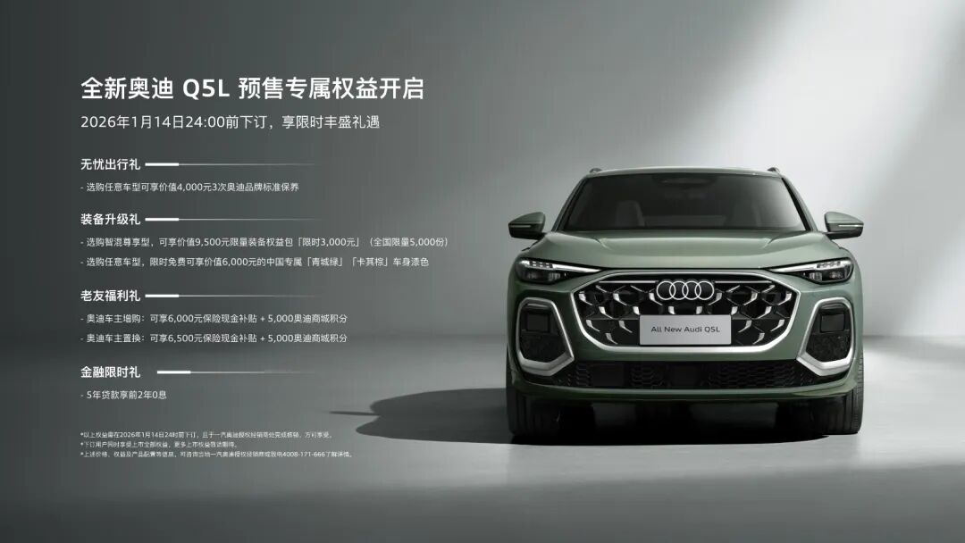 近日,从一汽奥迪官网了解,一汽奥迪旗下全新奥迪Q5L现已开启预售。新车推出智混豪华型、千万用户专享版、智混尊享型、智混旗舰型共4款车型,预售价区间为31.30-38.50万元,其中千万用户专享版全国限量1万台。作为对比,目前在售的一汽奥迪Q5L售价为34.98-42.98万元。