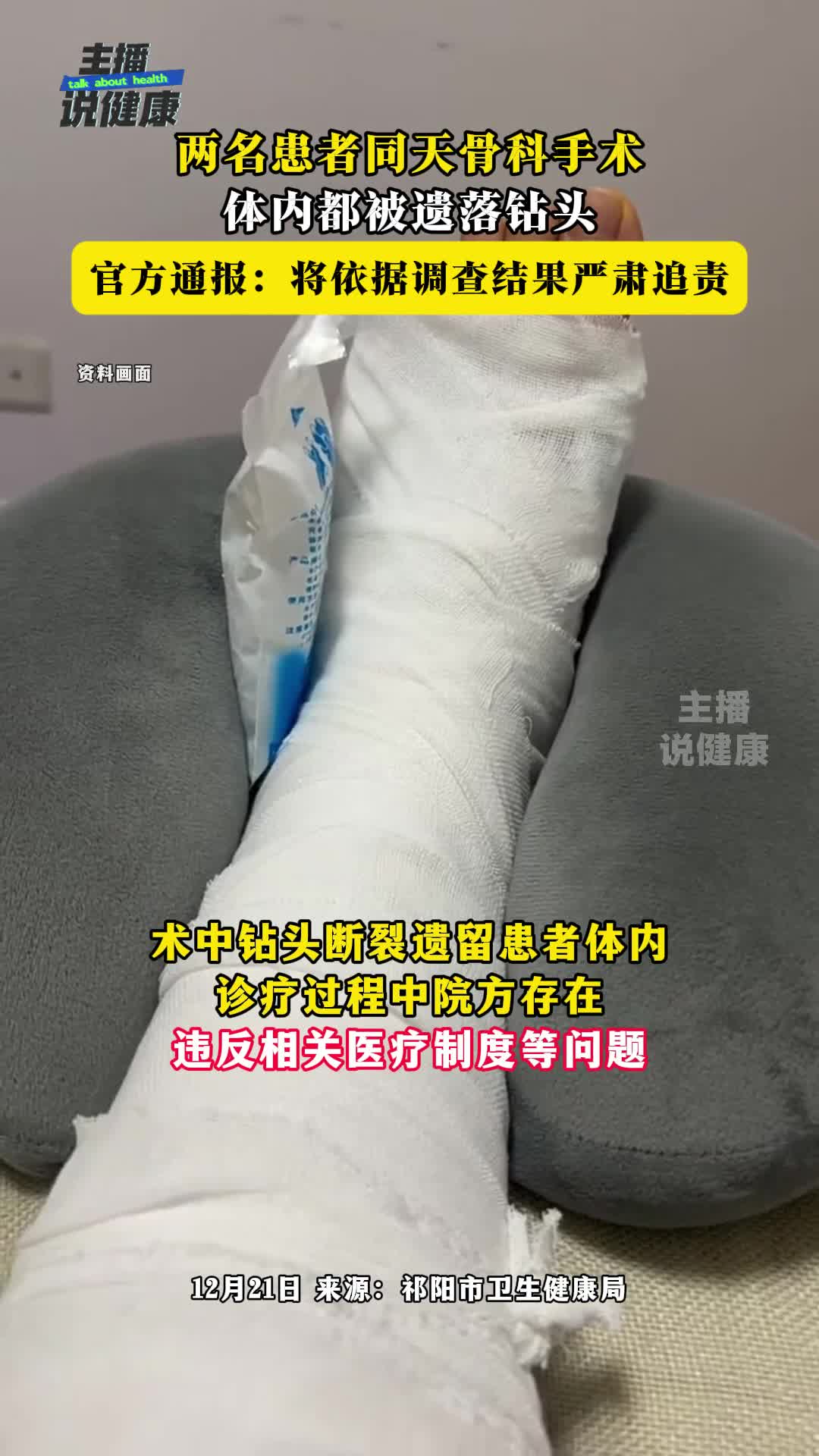 两名患者同天骨科手术,体内都被遗落钻头!官方通报:将依据调查结果严肃追责