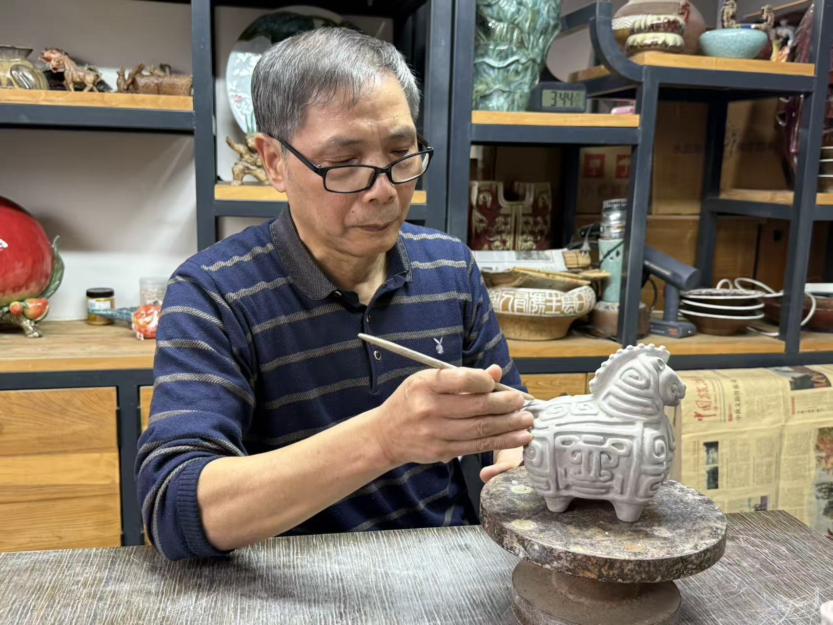 马年将至,他与佛山传媒文旅集团、石湾美陶厂联名创作的贺年陶艺摆件《马上吉祥》已然面世,这件作品不仅是一件生肖艺术品,更是一份融入日常、传递当代情绪的情感载体。近日,记者采访了苏锦伦,探寻一匹萌马陶艺作品背后的动人故事。