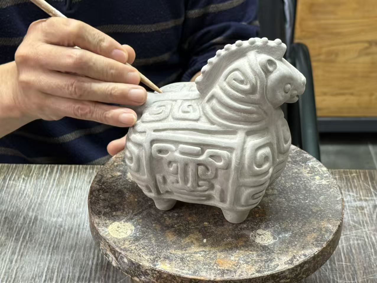 萌趣的外形之下,是深厚的传统底蕴。作品融入了商周青铜器中的吉祥纹样。“这些纹饰很丰富,是老祖宗传承下来的智慧,自带吉祥寓意,与主题契合。”苏大师表示,将庄严古朴的青铜纹饰“转译”为装饰在萌马身上的可爱纹样,本身就是一种古今对话,使其既不失文化根脉,又契合当代审美。