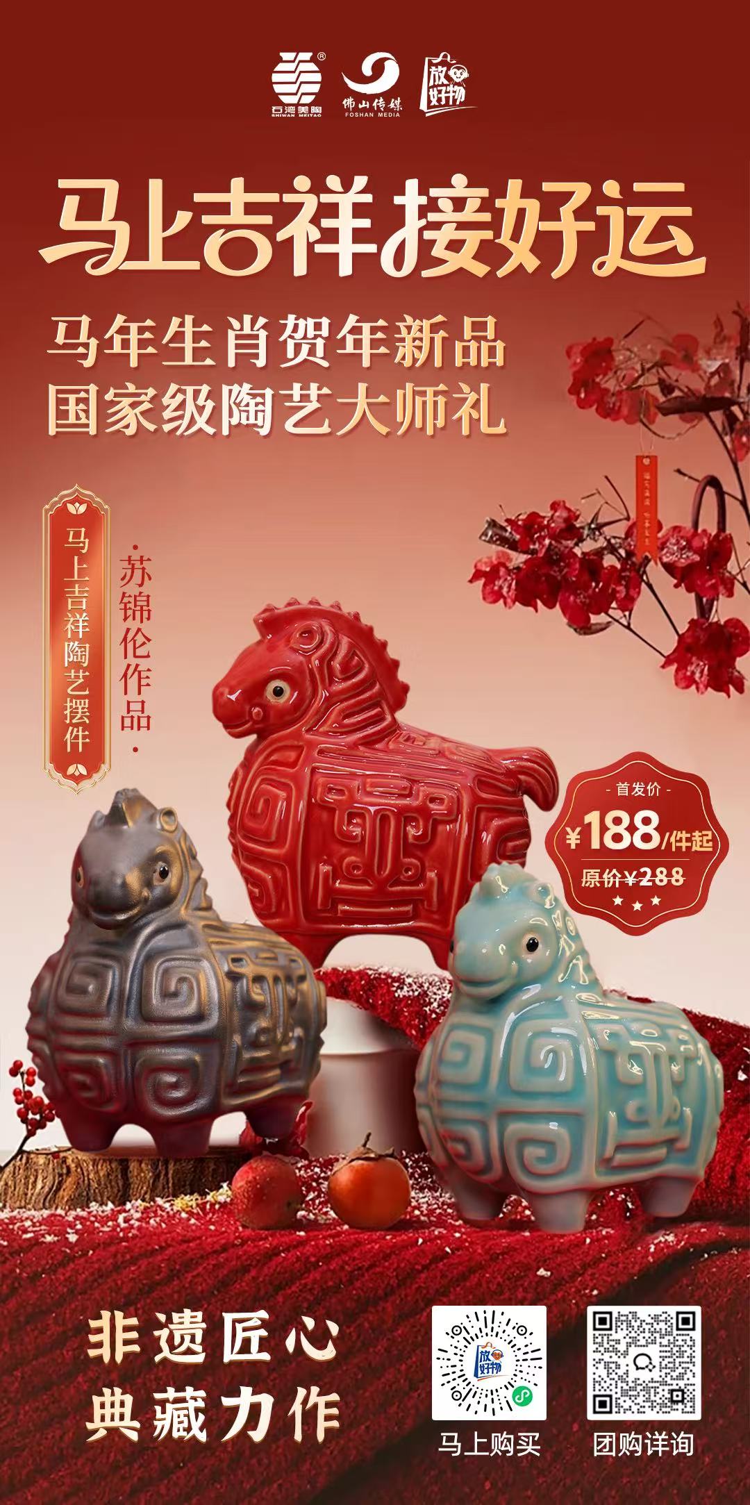 一匹萌马,载着古老的祝福与当下的哲思,从大师手中诞生,走向千家万户的桌案。《马上吉祥》不仅是一件陶艺品,更是一份轻柔的提醒:在奔赴未来的路上,别忘了,吉祥可以就在此刻,就在眼前。这或许正是传统手工艺在当代最温暖、最生动的存在方式。