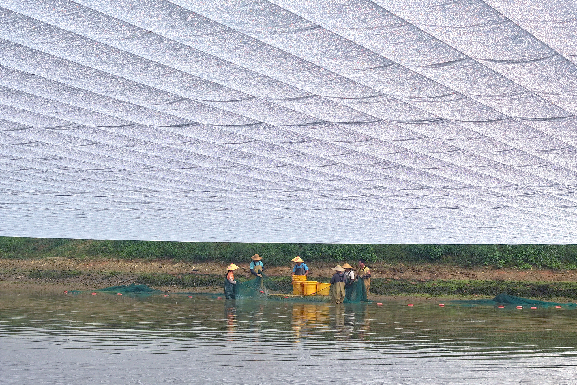 气温骤降,俯瞰高明区更合镇迳洞村,连片鱼塘之上覆着白茫茫的薄膜,宛如给水面披上了银装。这些是当地村民口中的“虾棚”——一个个温暖如春的“冬季养殖车间”。