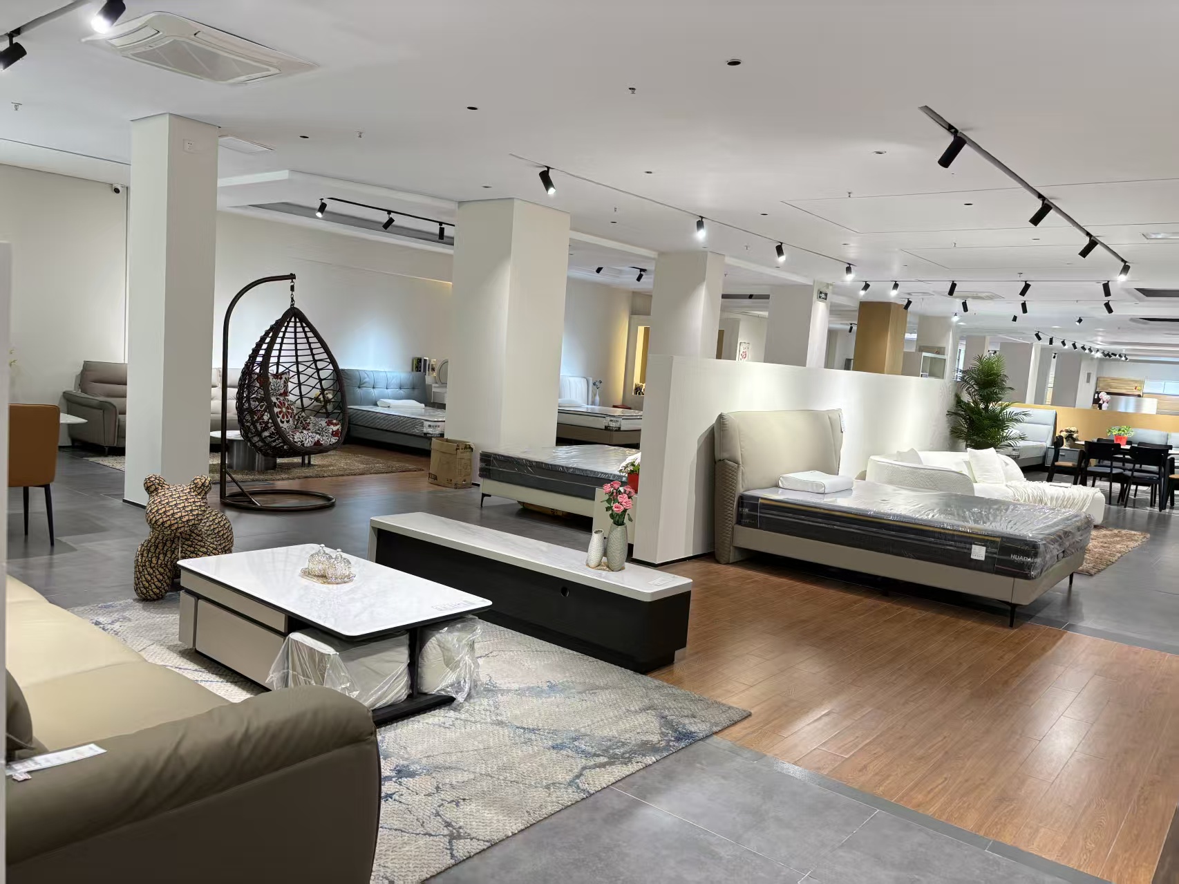 走进美家美居近2000㎡的仓库式卖场,这里家具款式丰富多样,现代、欧美、法式、北欧、工业、ins风、新中式等各类风格家具琳琅满目,无论是追求时尚潮流的年轻人,还是偏爱经典传统的消费者,都能在这里找到心仪的家具。从莫兰迪色家具的清新雅致,到电动沙发的舒适便捷;从网红茶几的独特设计,到金丝胡桃木沙发的精致大气,每一款家具都独具特色,让人爱不释手。