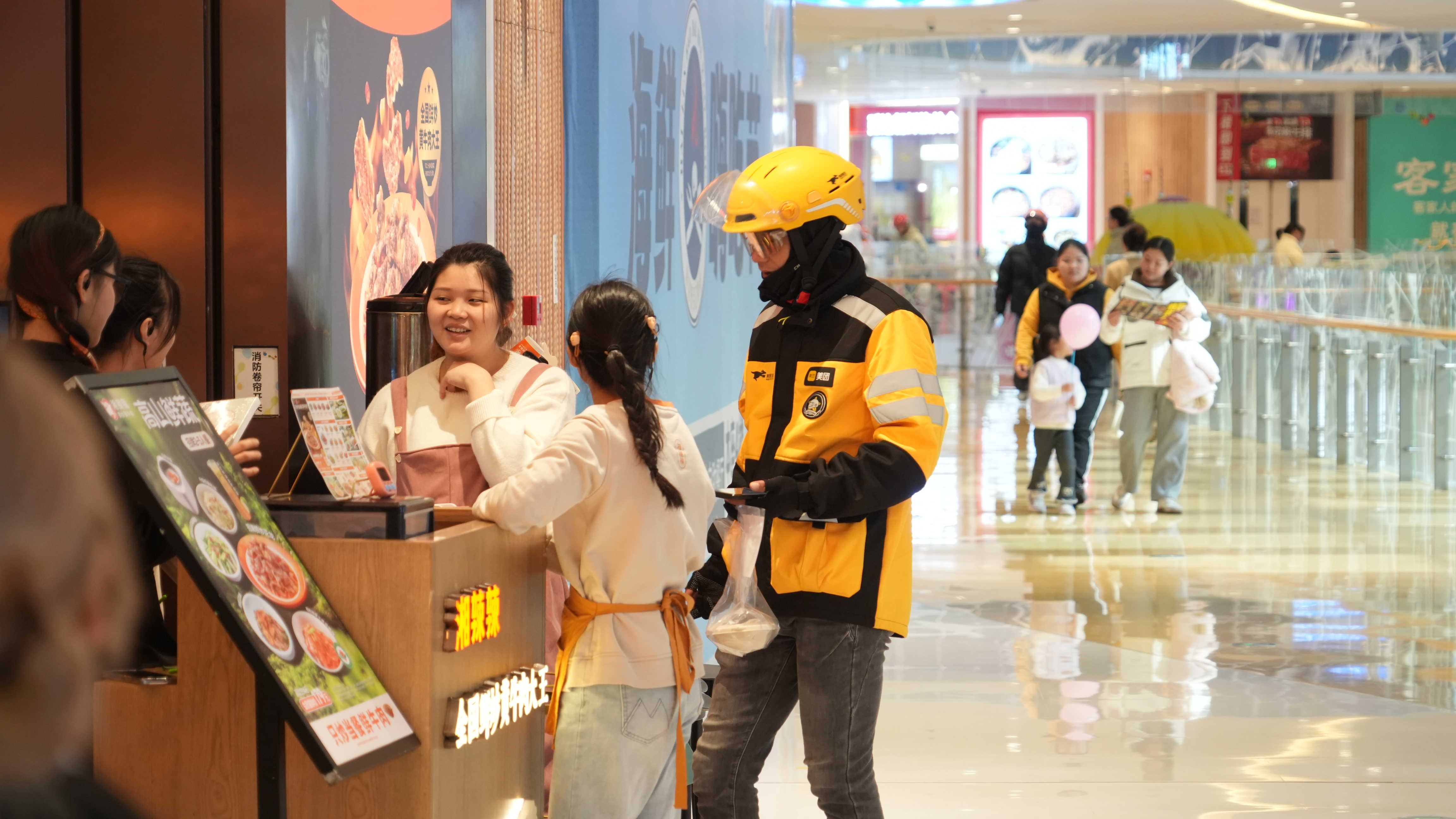 3日中午12点,正是市民用餐高峰。外卖员们的工服下穿着厚重的棉衣,不少人还戴上了毛线帽,用口罩与围巾将脸裹得严严实实,手套虽厚,手指仍感觉寒冷。
